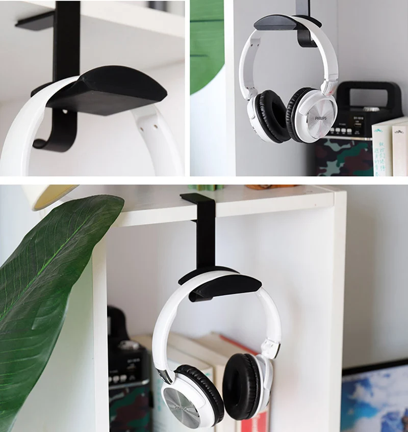 Soporte para colgar auriculares sin perforaciones, gancho lateral para mesa, estantes para colgar en la pared, soporte multifunción para organizador de auriculares para juegos