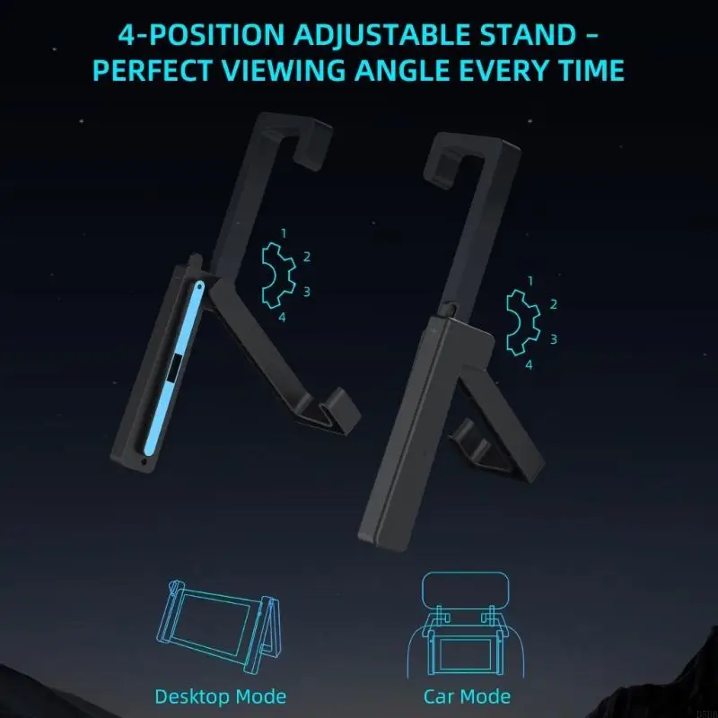 Perfecto para juegos en el asiento trasero durante viajes por carretera o como soporte de escritorio ajustable para configuraciones de juegos en casa con el soporte de consola portátil.