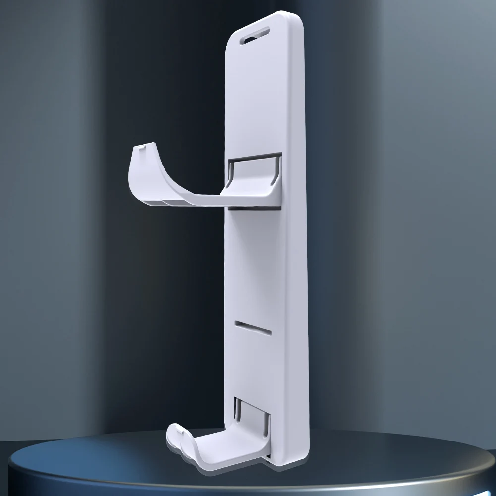 2. Compacto y plegable:El soporte colgante para auriculares del controlador está diseñado para plegarse y almacenarse fácilmente, lo que permite un uso eficiente del espacio. Con su diseño de pestillo superior e inferior, se bloquea de forma segura en su lugar cuando se pliega, lo que garantiza un almacenamiento seguro y compacto.