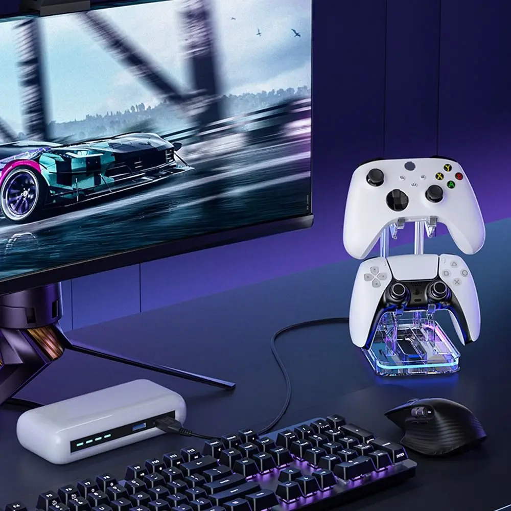 Comprar Soporte para controlador de auriculares con luces, soporte acrílico para controlador de juegos de 2 niveles para PS4/ PS5/Xbox ONE/Switch