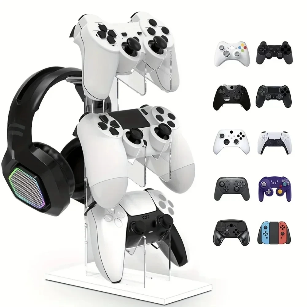 Organización eficiente: mantenga su configuración de juego ordenada y organizada con este soporte para controlador de 3 capas y accesorio para juegos con soporte para auriculares para PS5 y PS4.
