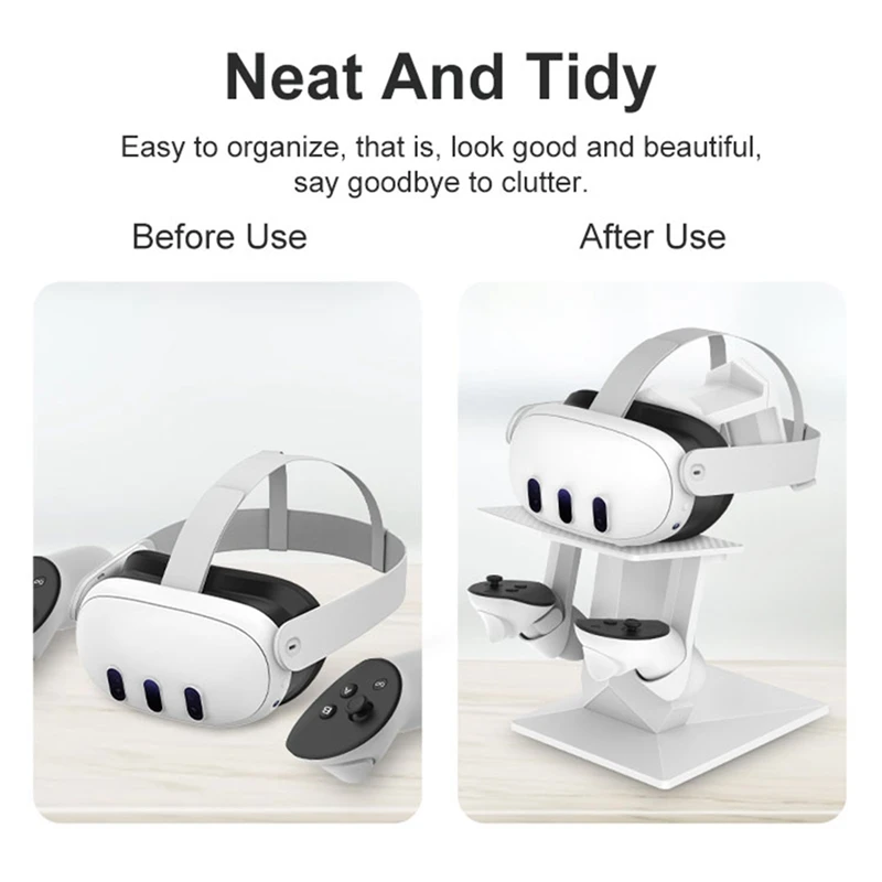 4. Fácil Instalación y limpieza conveniente: el soporte de auriculares y controladores VR es fácil de instalar y operar, con piezas desmontables que hacen que la limpieza sea fácil.