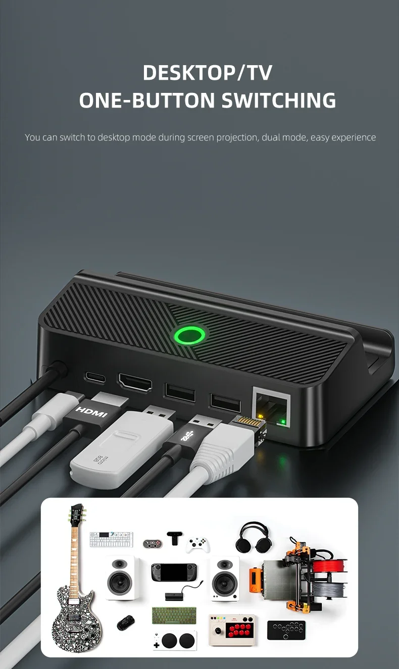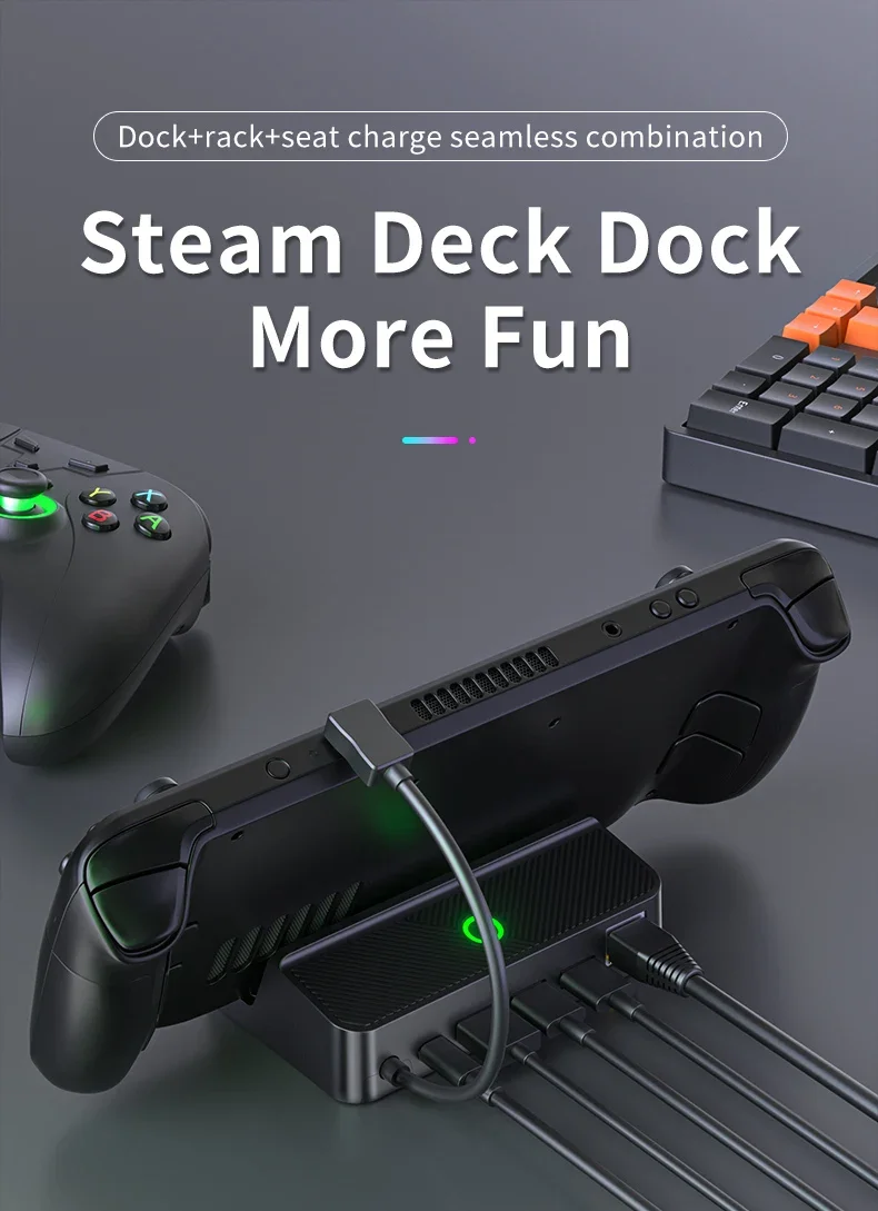 Comprar Soporte convertidor de vídeo Compatible con HDMI 4K para Steam Deck, adaptador de vídeo para TV, base de carga para consola Steam Deck