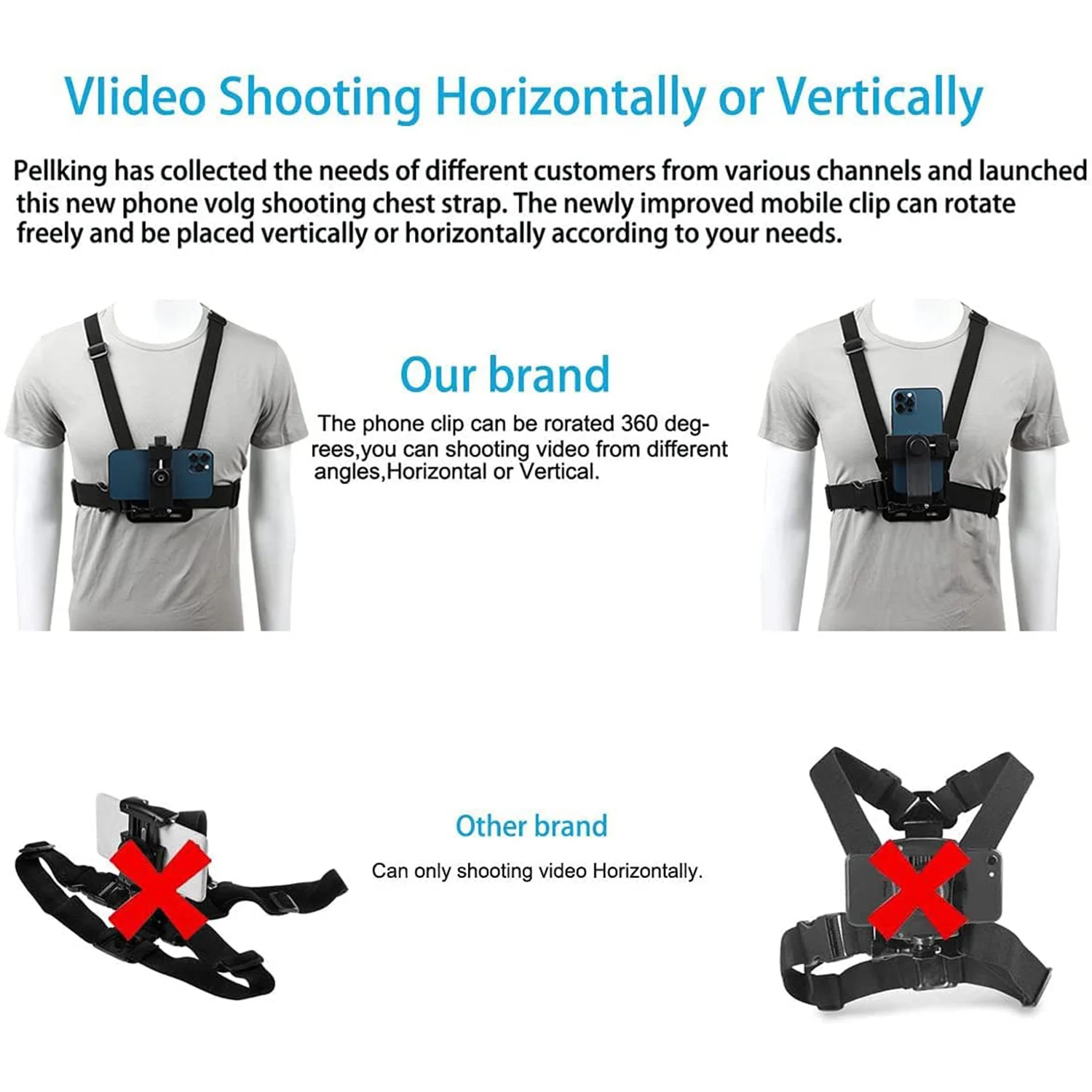 【Gran opción para POV/VLOG】 El teléfono se puede colocar horizontal y verticalmente. El diseño del gancho en J y el tornillo largo pueden hacer que el teléfono gire 90°, El tamaño de esta correa es fácilmente ajustable, se ajusta incluso a las chaquetas de invierno más grandes y se adapta a una amplia gama de tamaños de cuerpo.