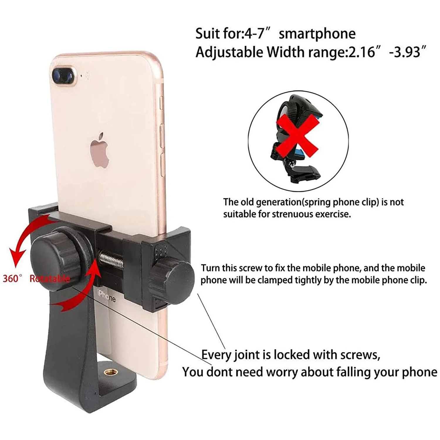 【Estructura estable】Hay dos almohadillas de goma antideslizantes en la parte inferior y superior del soporte del teléfono;Cuando use la mini llave proporcionada para sujetar el tornillo largo al soporte con gancho en J, el clip del teléfono móvil estará de acuerdo con el ángulo ajustado, disparará estable y no se deslizará.