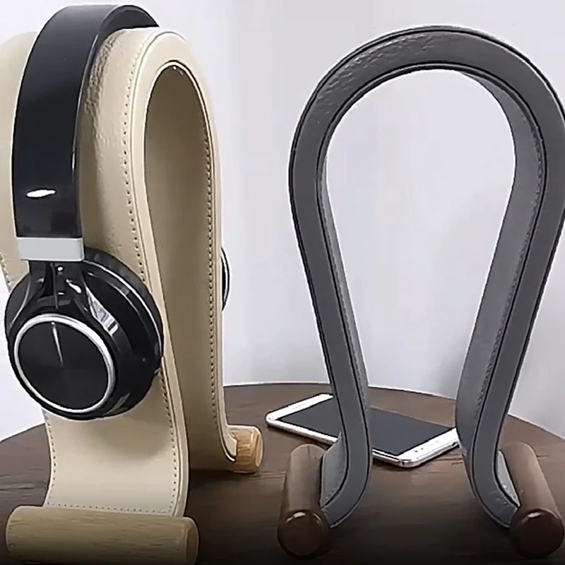 Comprar Soporte de cuero para auriculares en forma de U, soporte de mesa para auriculares, soporte de exhibición para auriculares para juegos de PC, colgador de estante, blanco crema