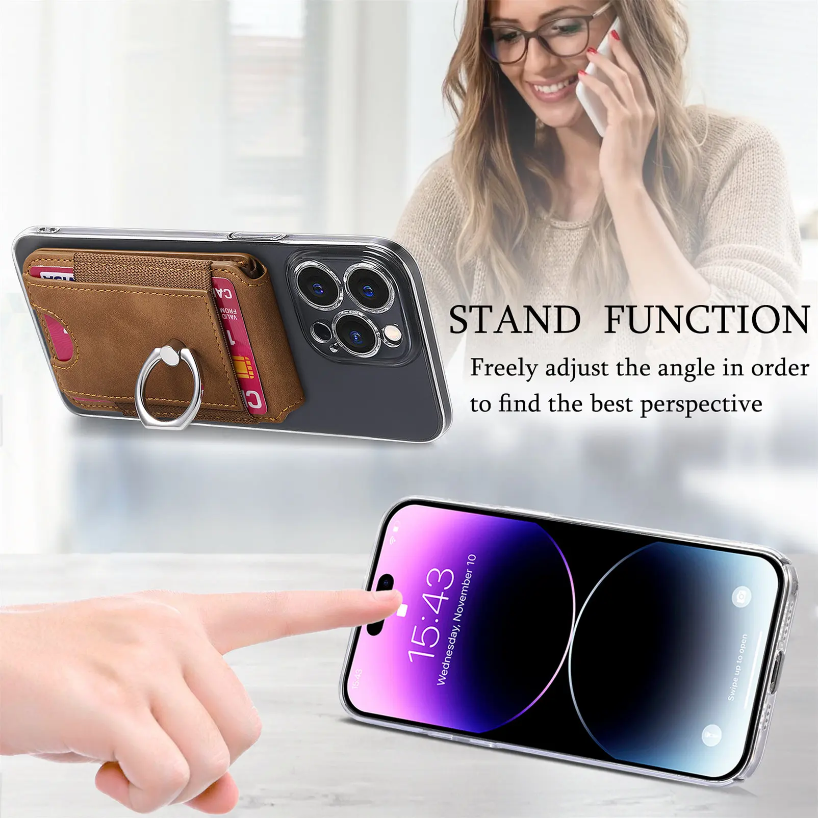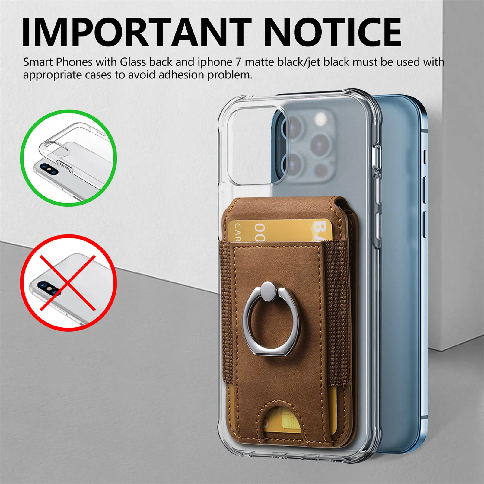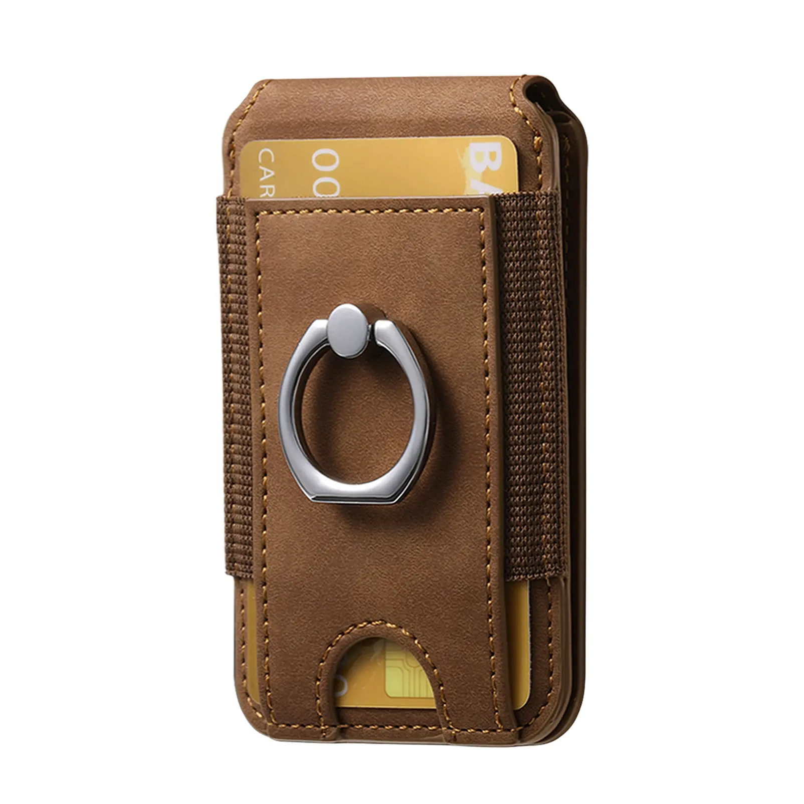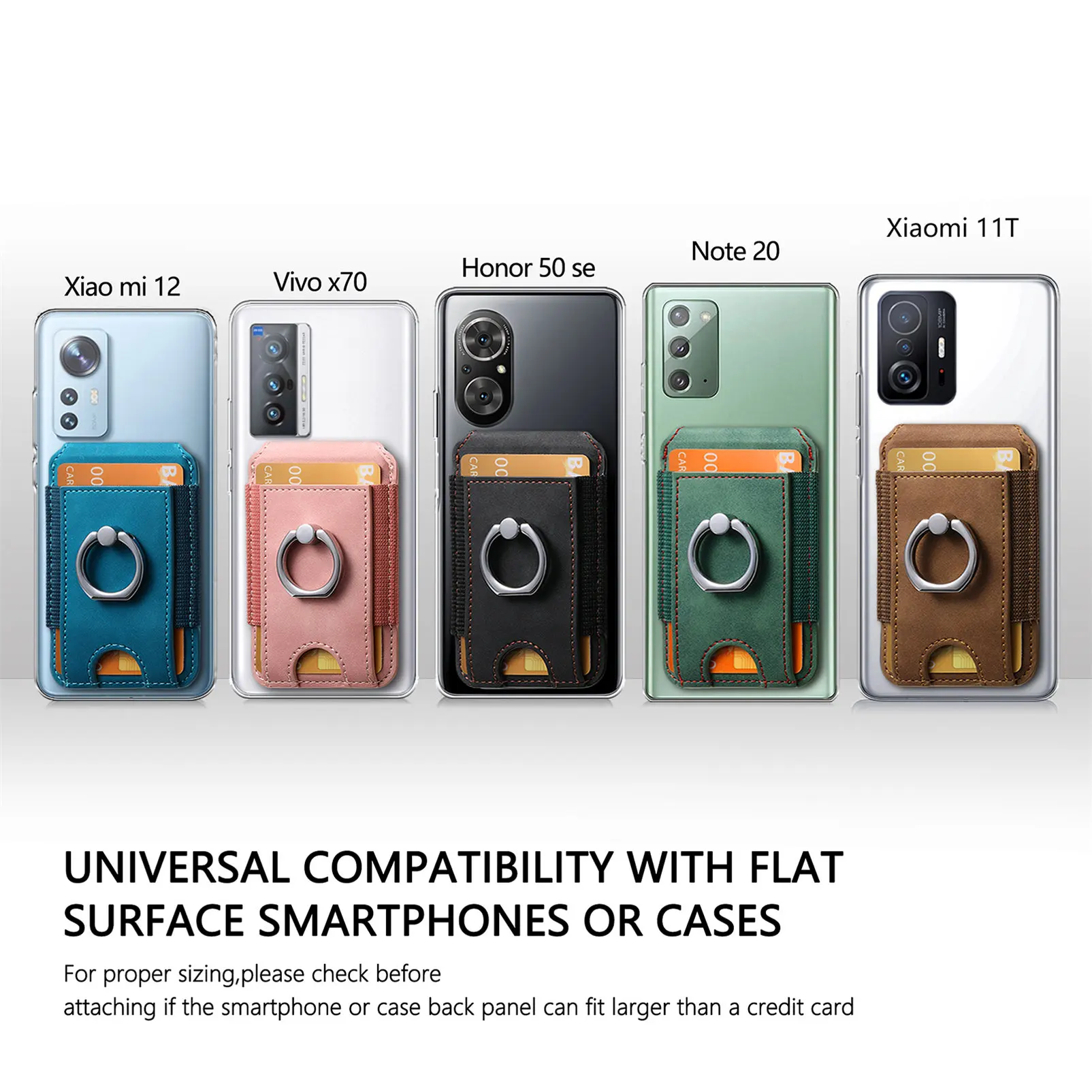 Comprar Soporte de cuero para tarjetas, adhesivo para tarjetas de identificación de crédito, bolsillo trasero para teléfono móvil, funda para billetera, soporte de anillo para iPhone, bolsa Universal