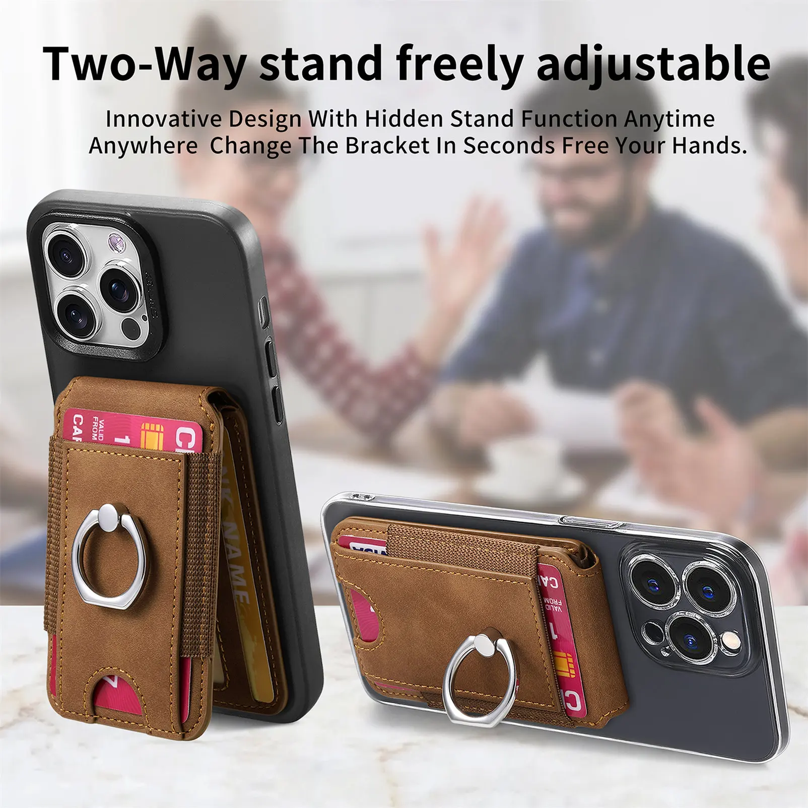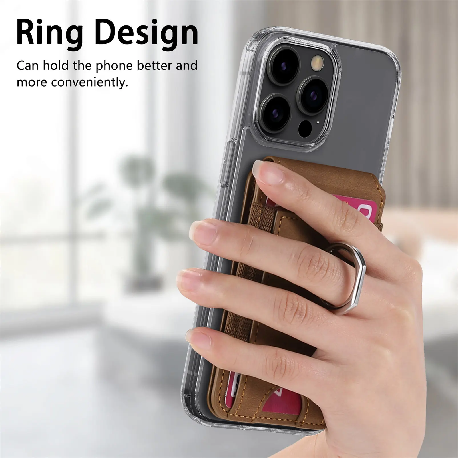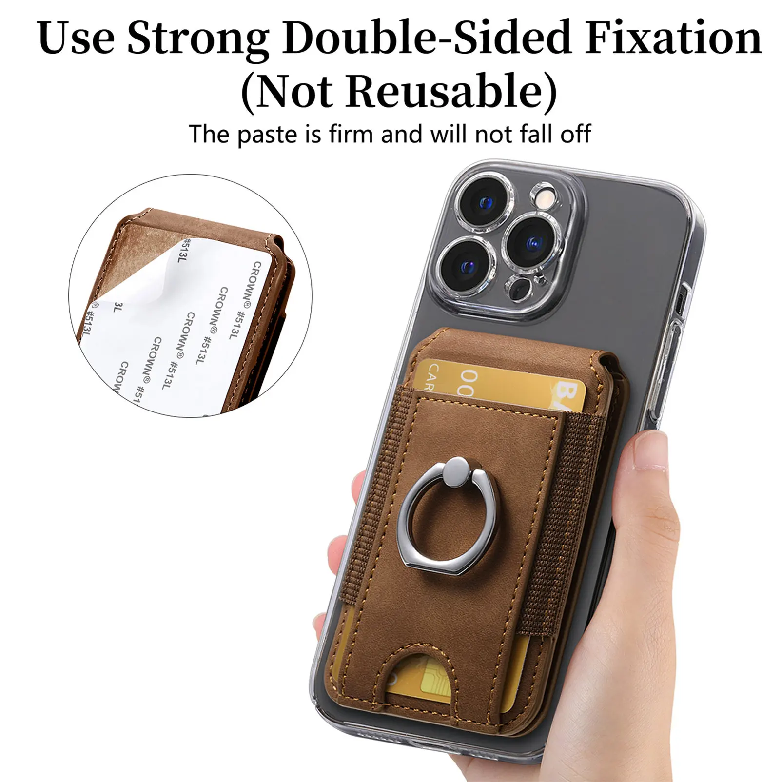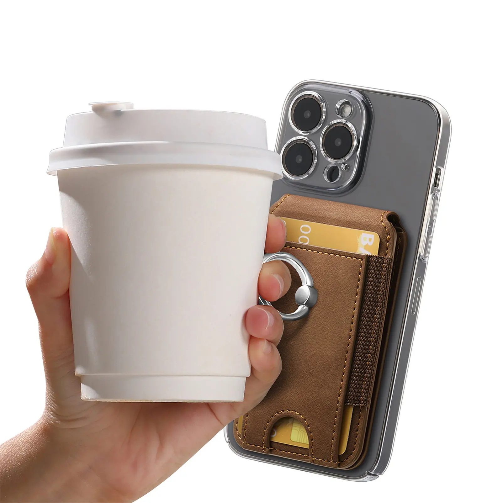Comprar Soporte de cuero para tarjetas, adhesivo para tarjetas de identificación de crédito, bolsillo trasero para teléfono móvil, funda para billetera, soporte de anillo para iPhone, bolsa Universal