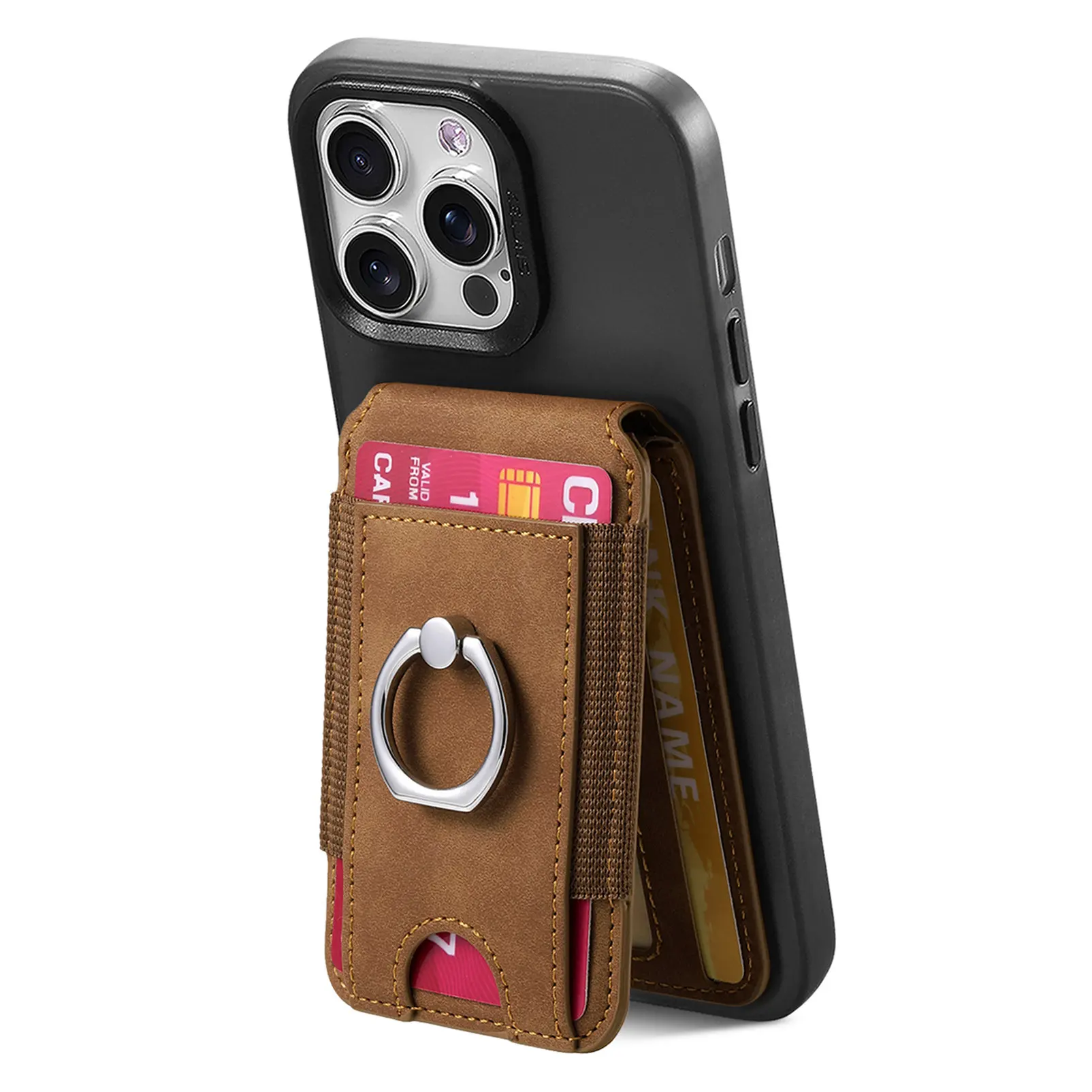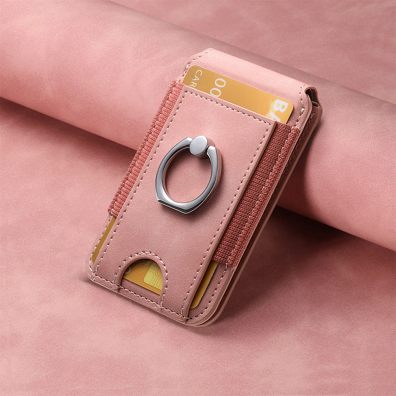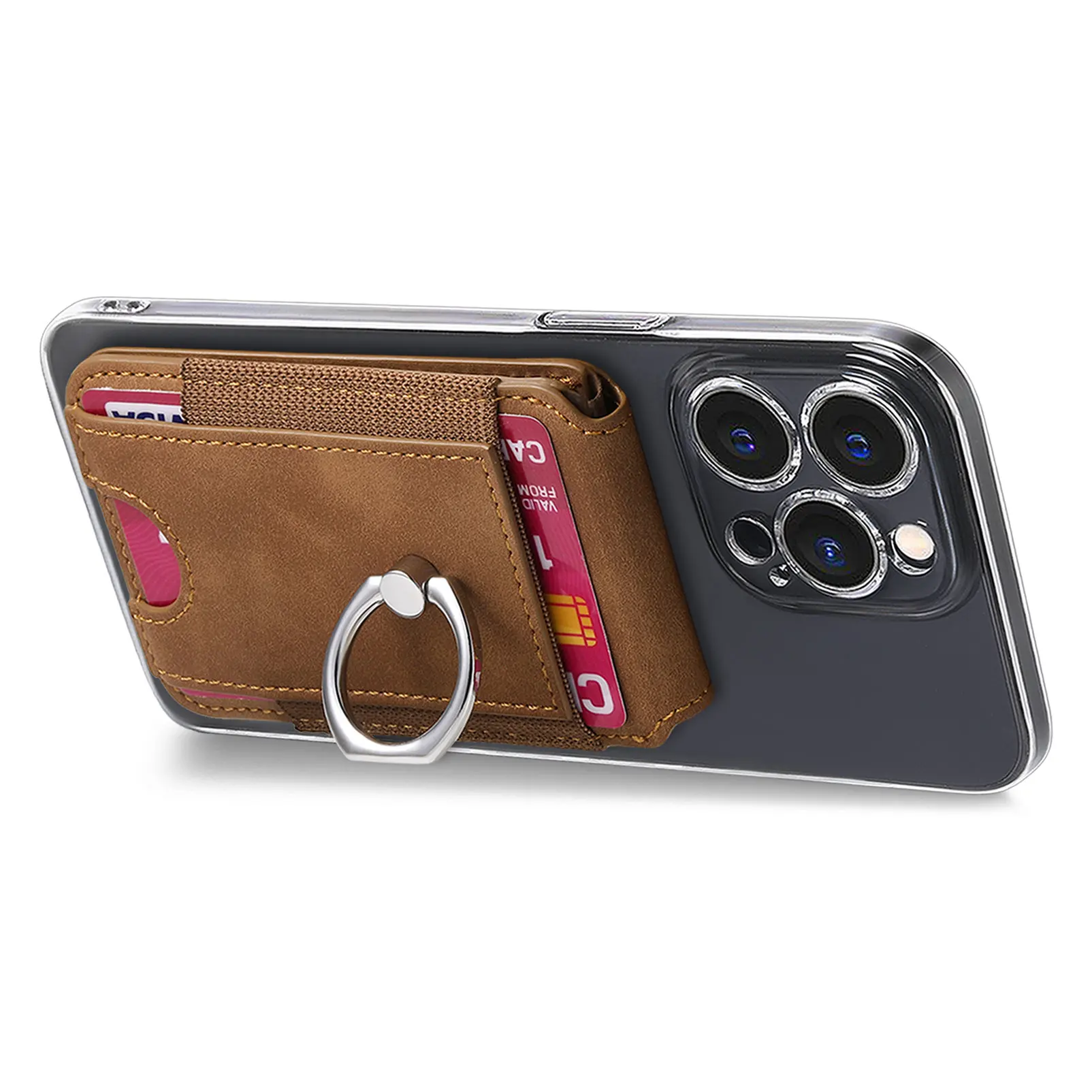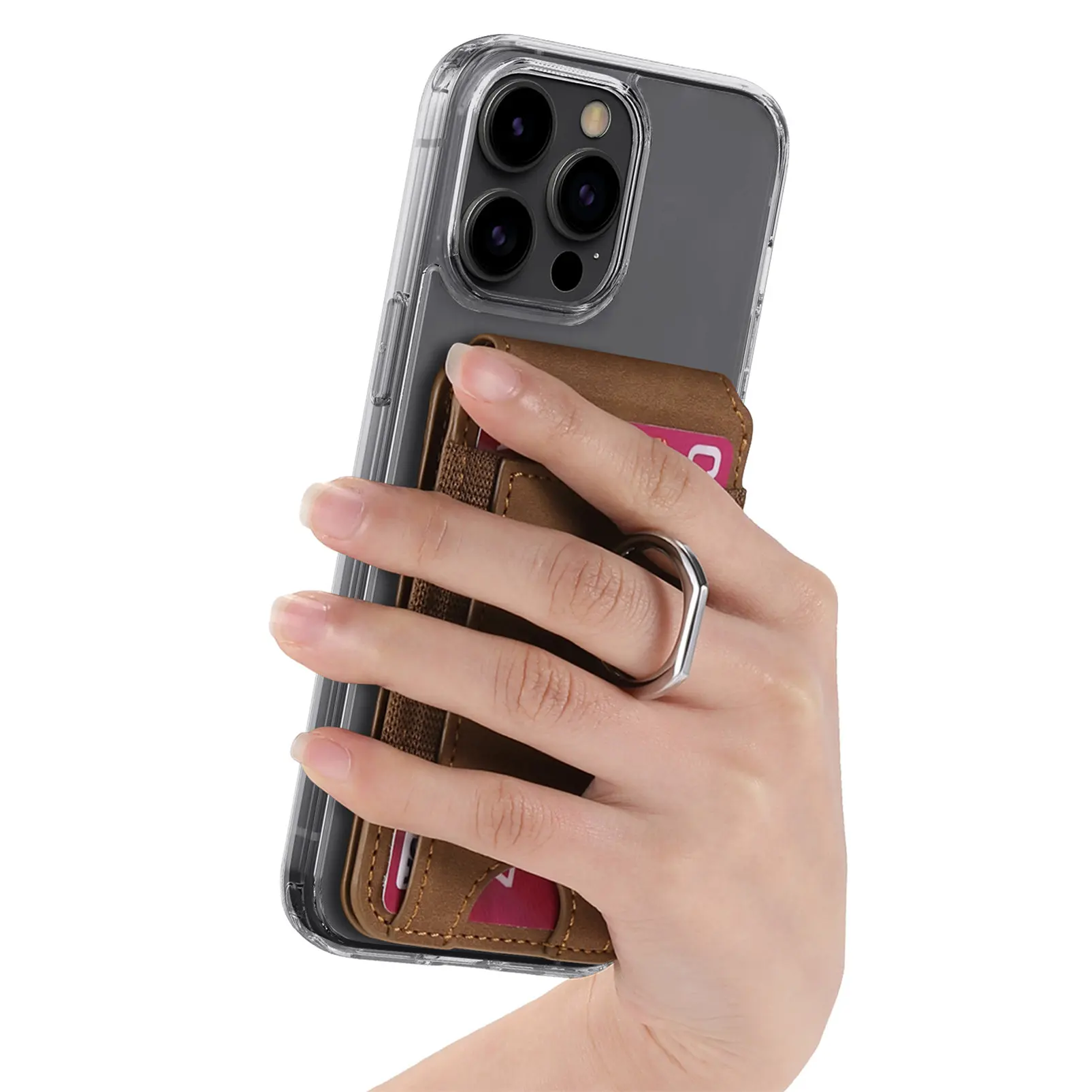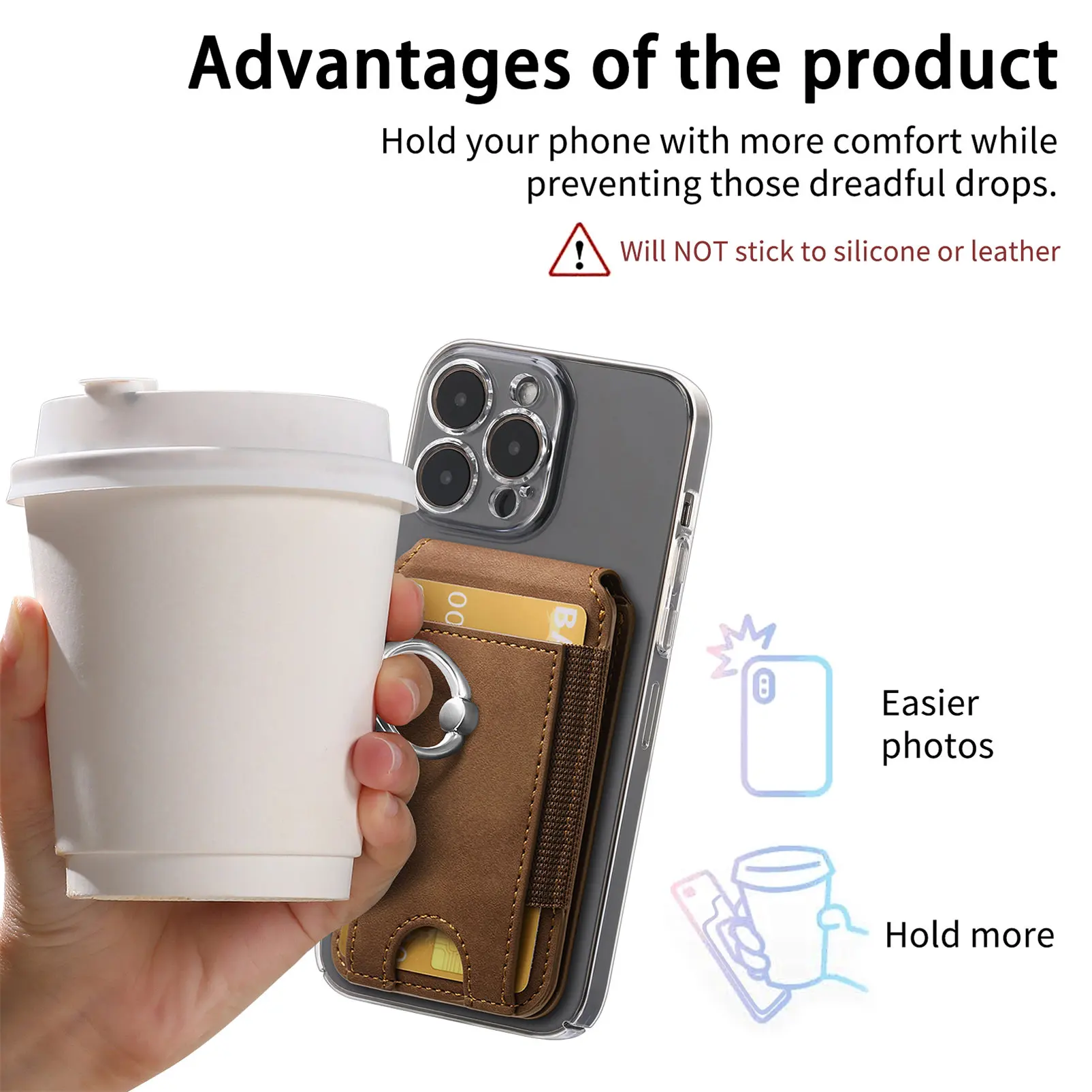 Comprar Soporte de cuero para tarjetas, adhesivo para tarjetas de identificación de crédito, bolsillo trasero para teléfono móvil, funda para billetera, soporte de anillo para iPhone, bolsa Universal