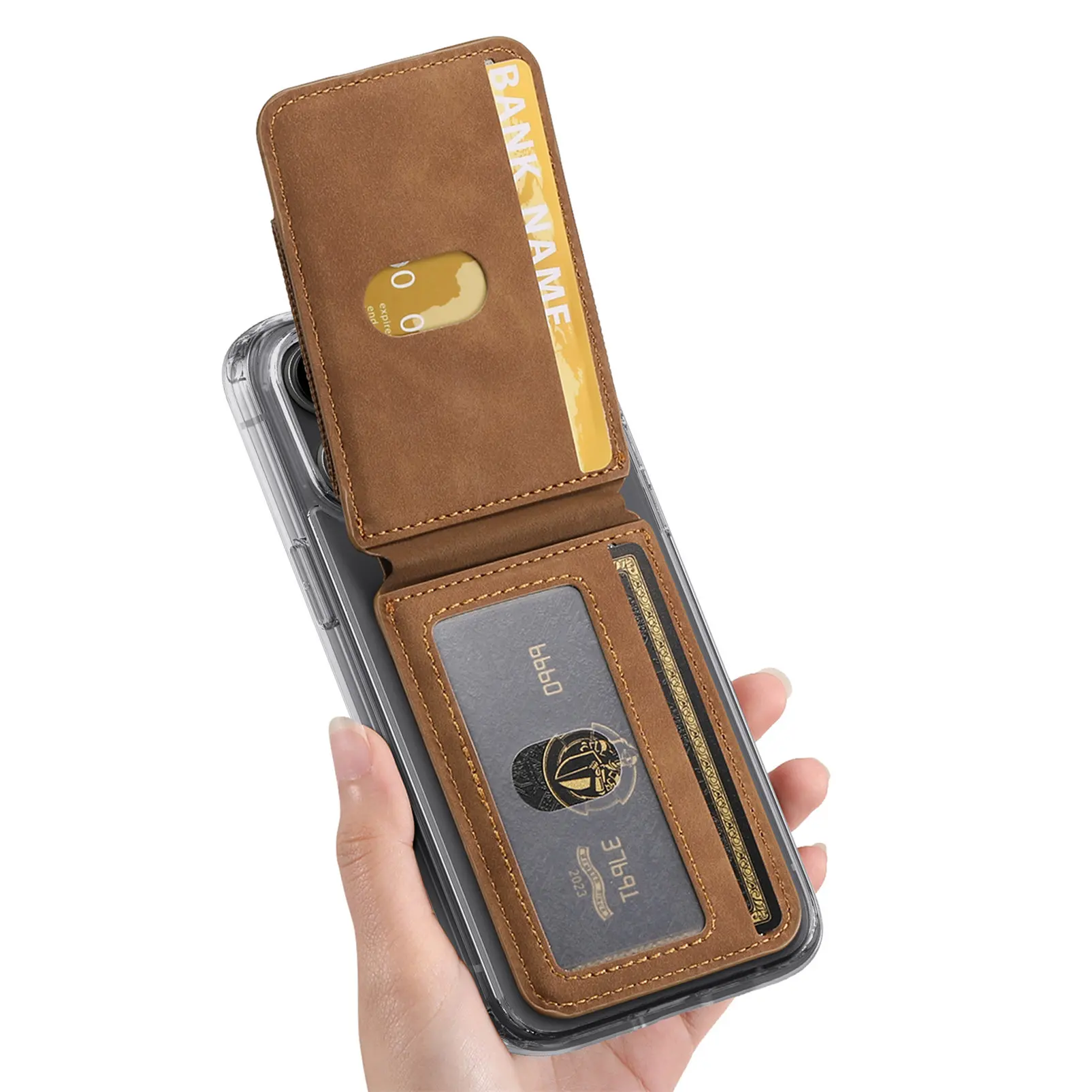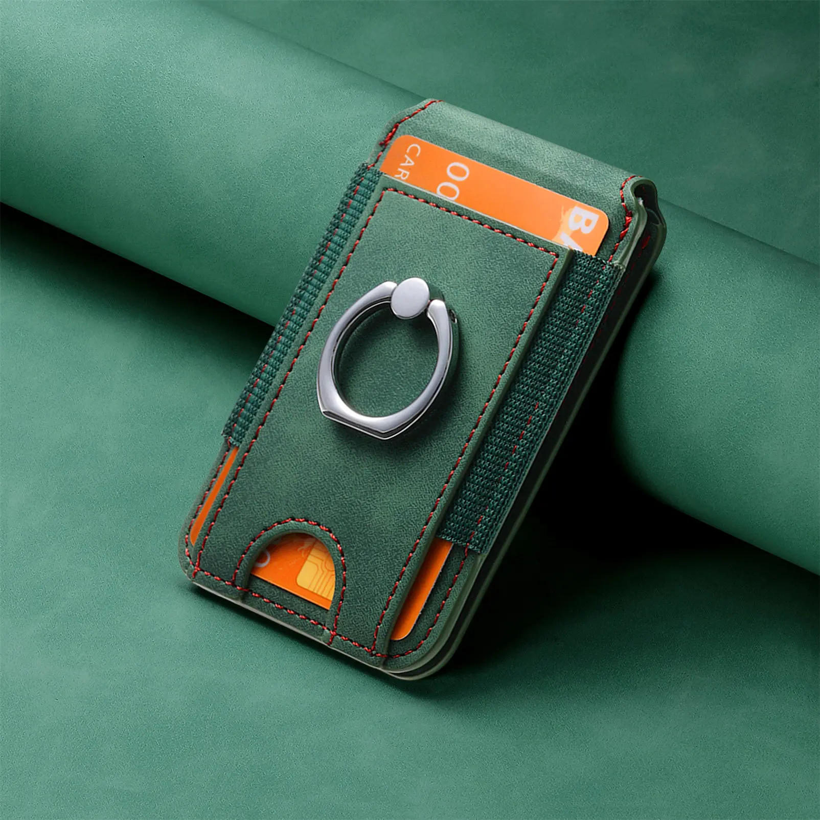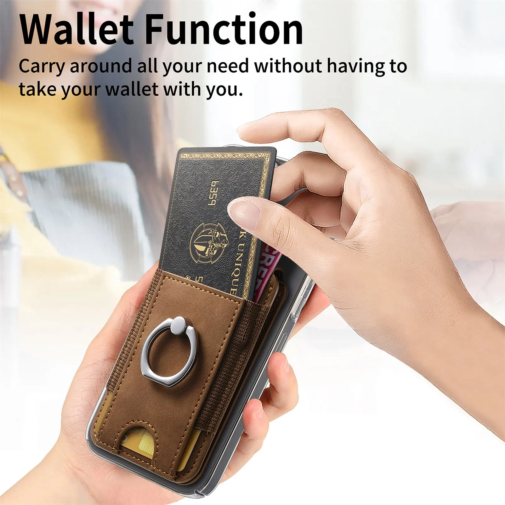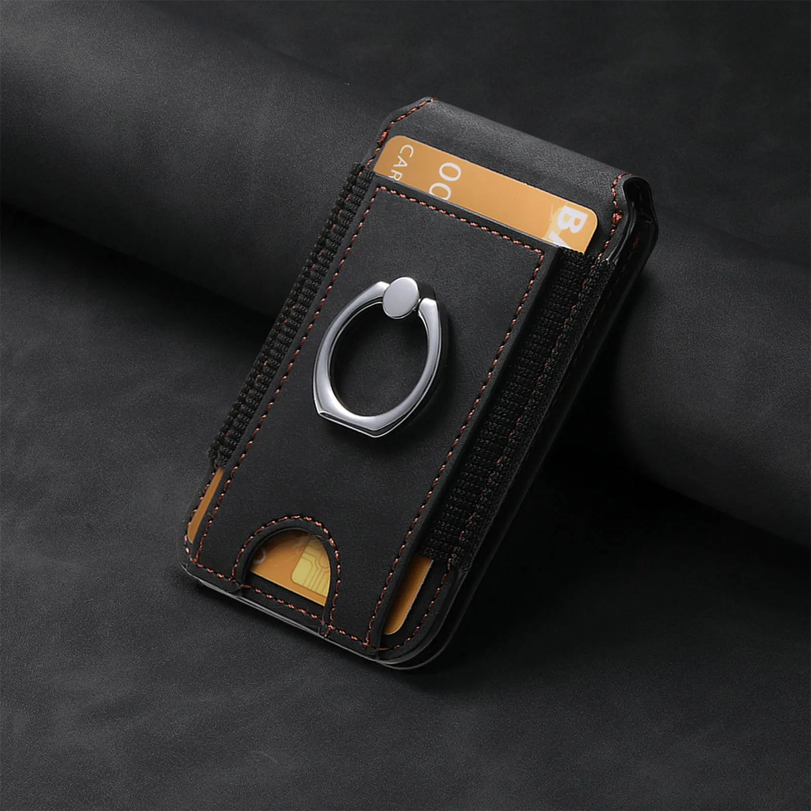 Comprar Soporte de cuero para tarjetas, adhesivo para tarjetas de identificación de crédito, bolsillo trasero para teléfono móvil, funda para billetera, soporte de anillo para iPhone, bolsa Universal