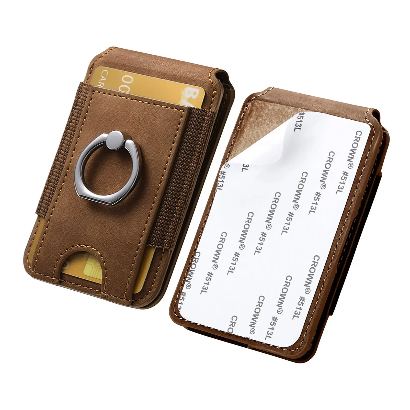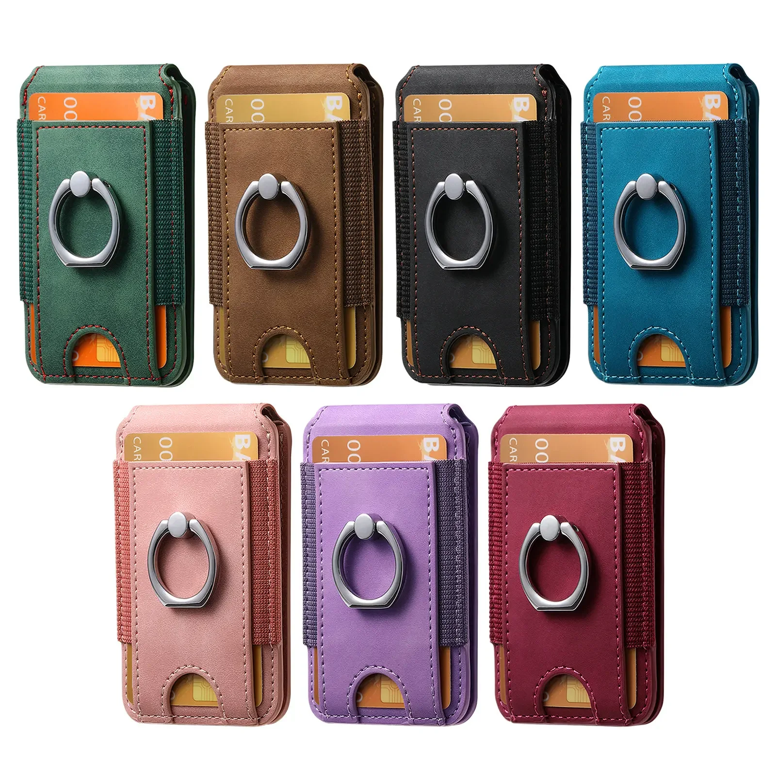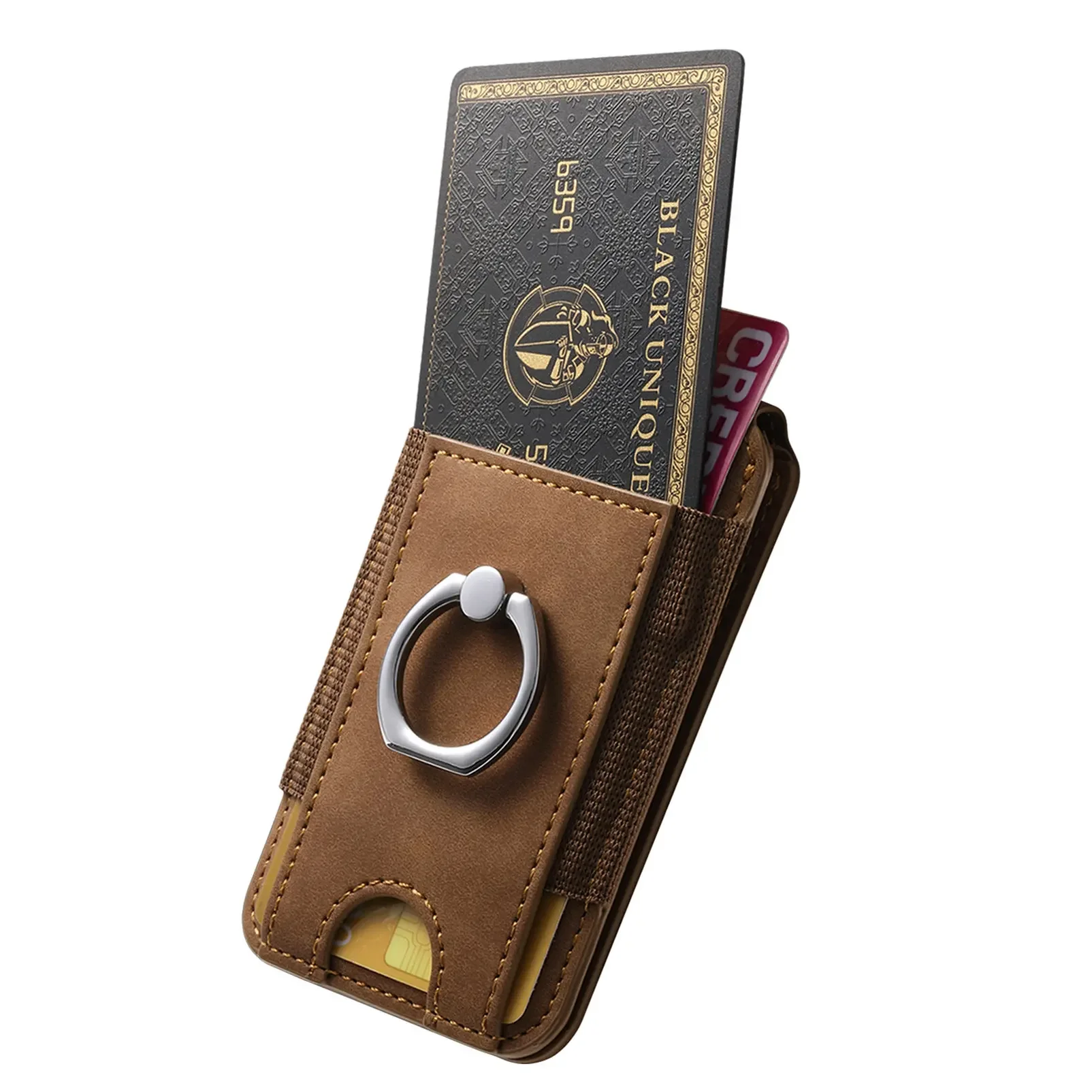 Comprar Soporte de cuero para tarjetas, adhesivo para tarjetas de identificación de crédito, bolsillo trasero para teléfono móvil, funda para billetera, soporte de anillo para iPhone, bolsa Universal