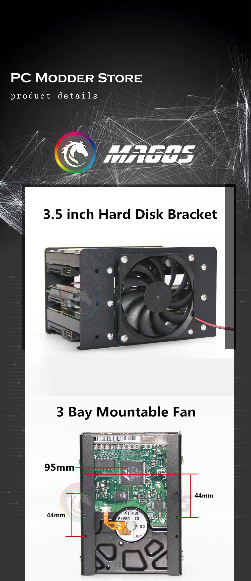 La distancia del orificio inferior es de 44 mm y el orificio inferior se puede instalar en la posición del disco duro 3.5 del chasis.