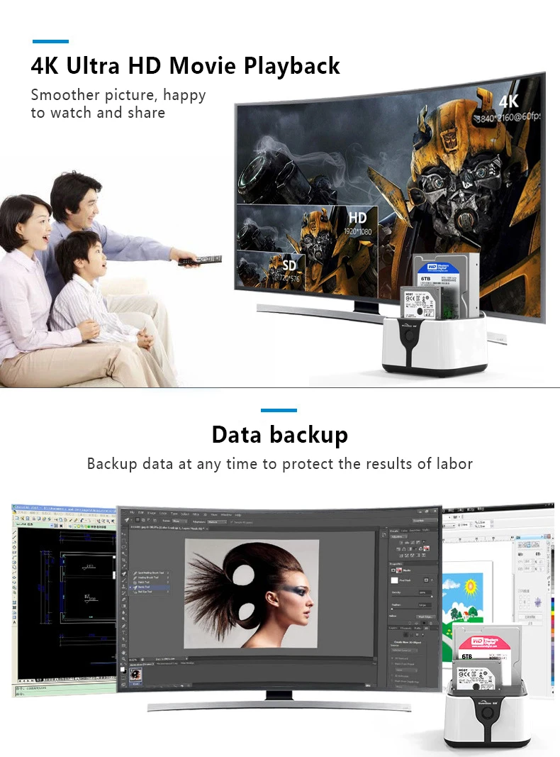 Con su diseño fácil de usar, el soporte para disco duro USB 3.0 UTHAI Dual Bay es fácil de configurar y usar, lo que lo hace ideal tanto para principiantes como para profesionales.