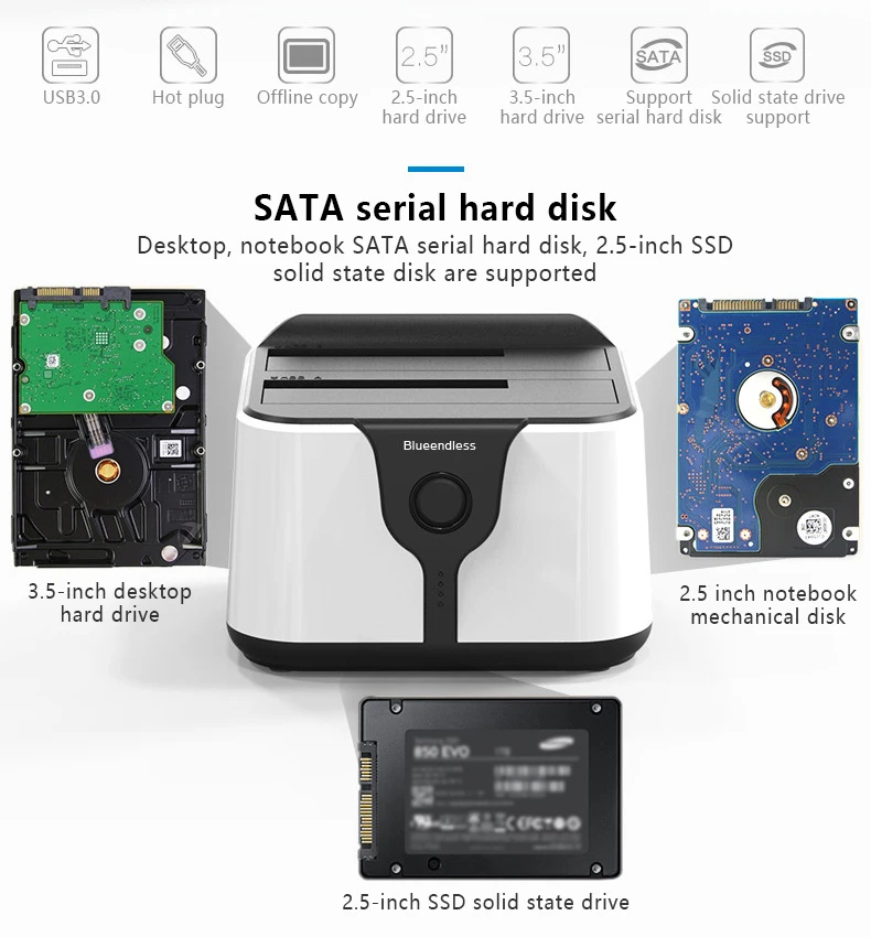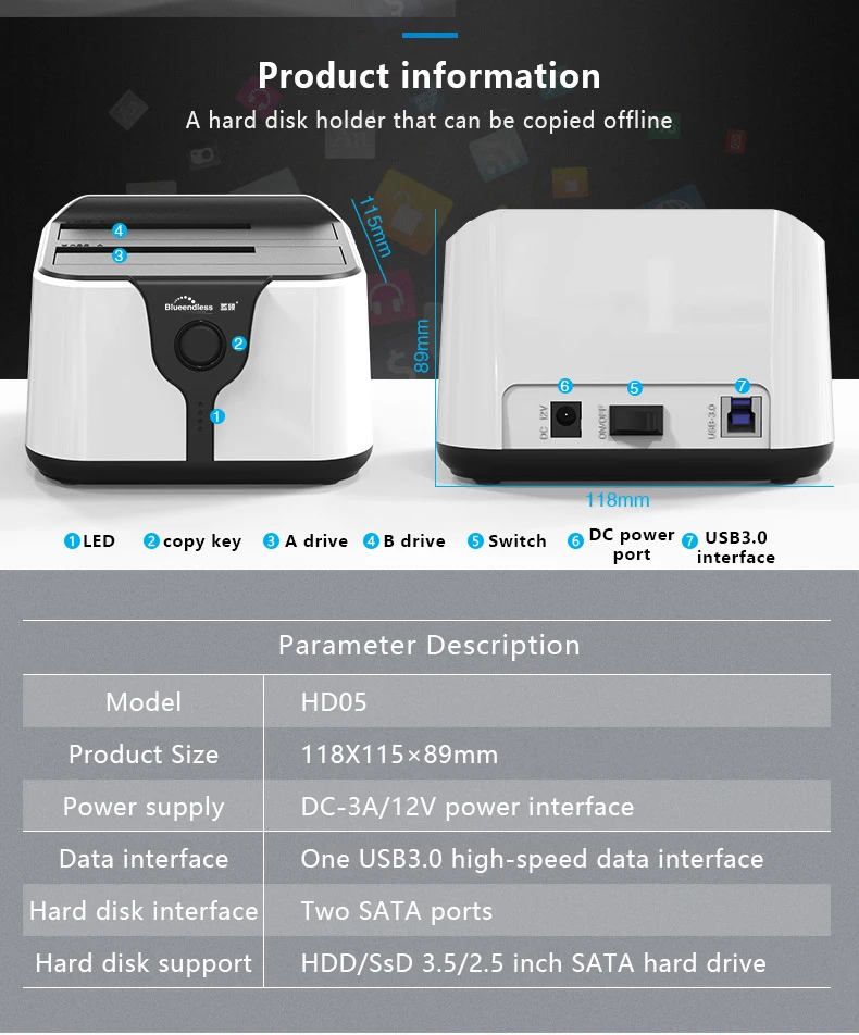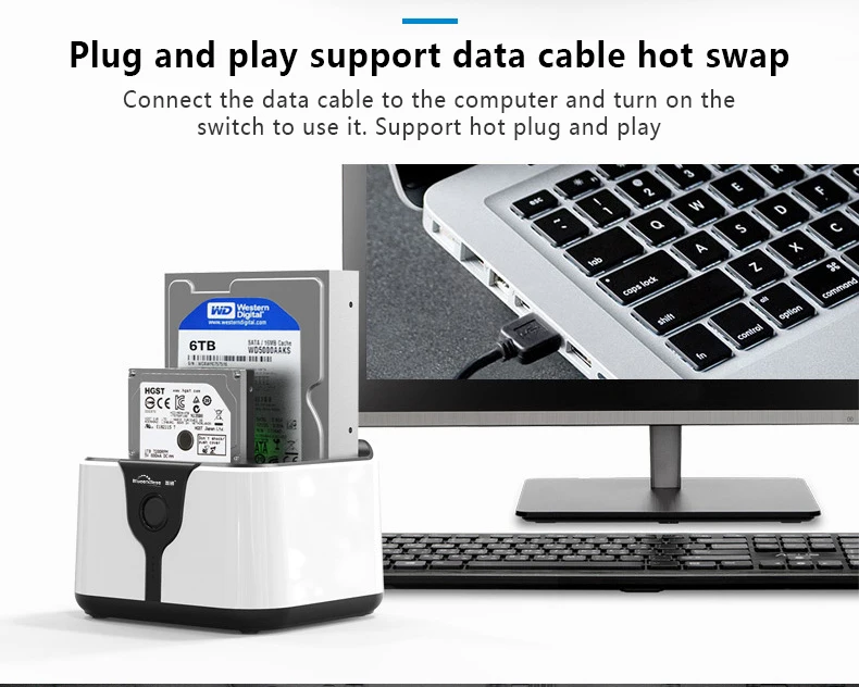 Equipado con una interfaz USB 3.0 de alta velocidad, este soporte para unidad garantiza velocidades de transferencia de datos rápidas para una copia de archivos rápida y fluida.