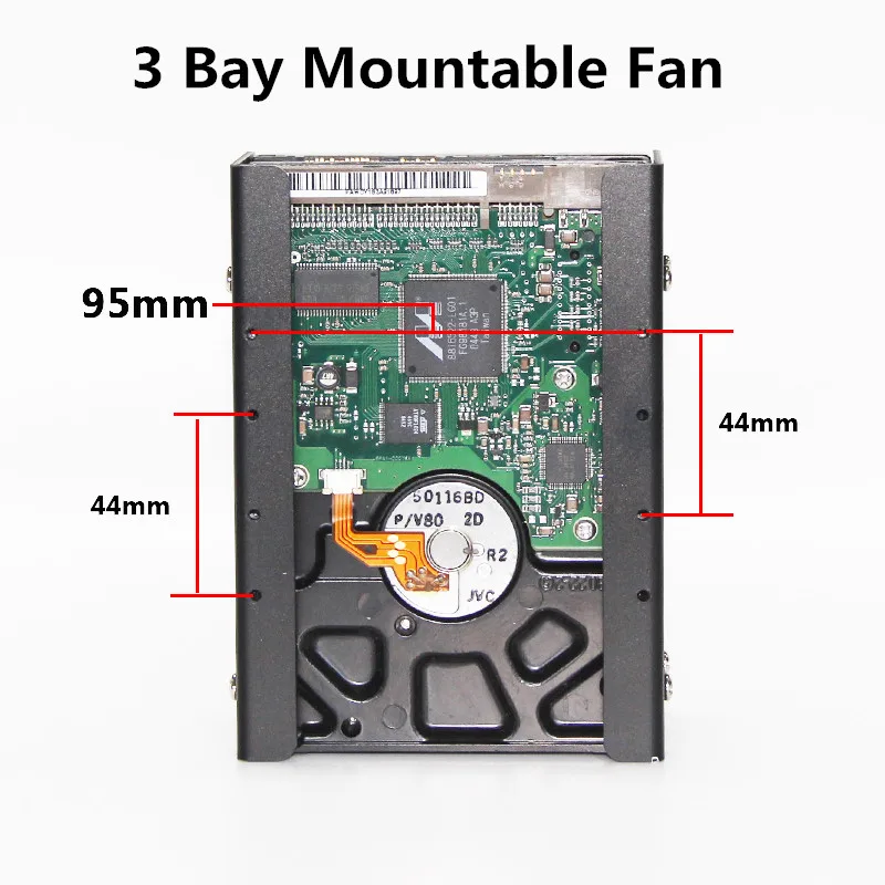 La distancia del orificio inferior es de 44mm, y el orificio inferior se puede instalar en la posición del disco duro 3,5 del chasis.