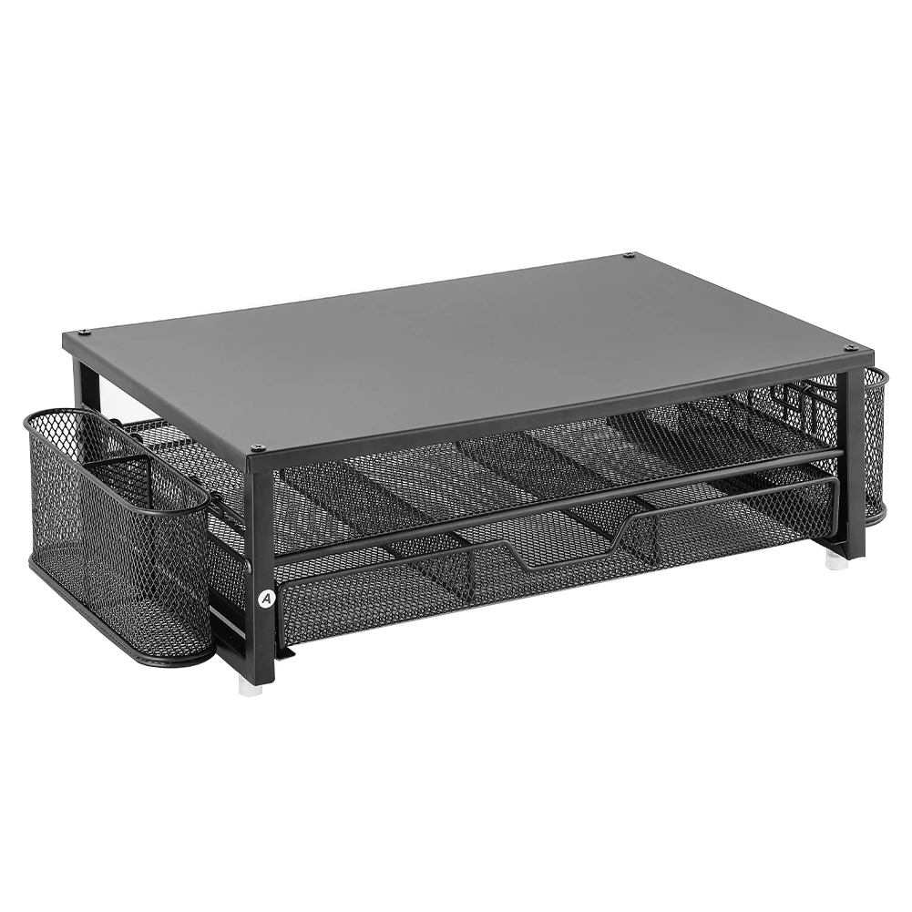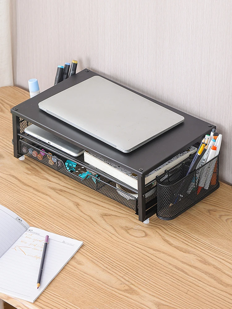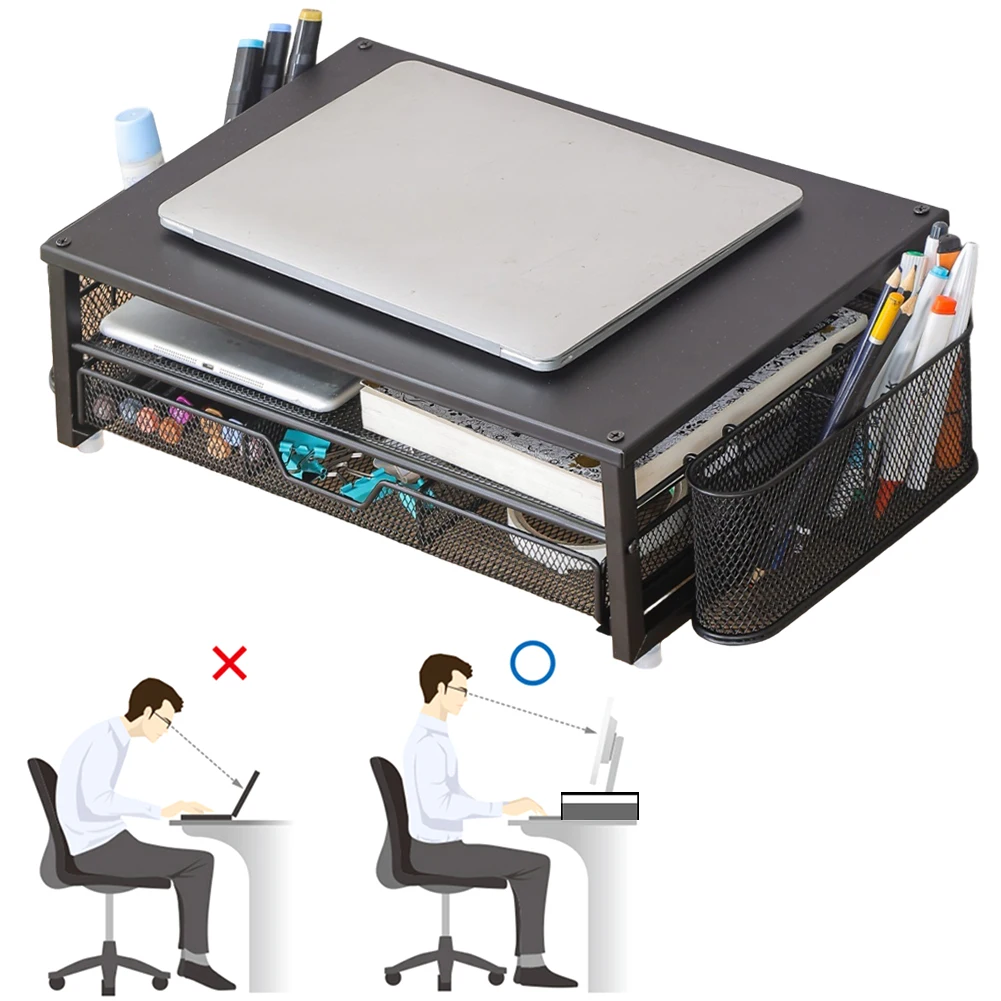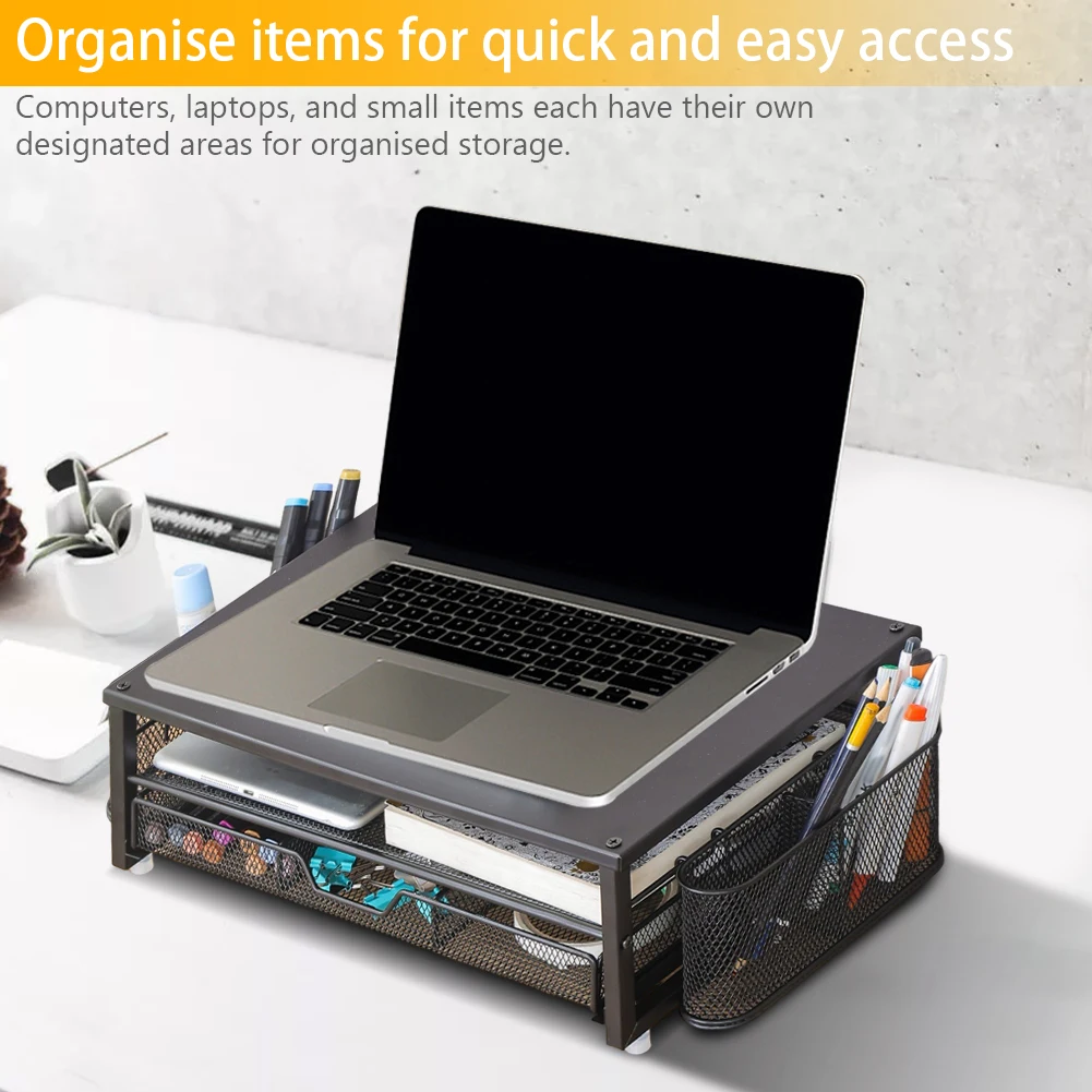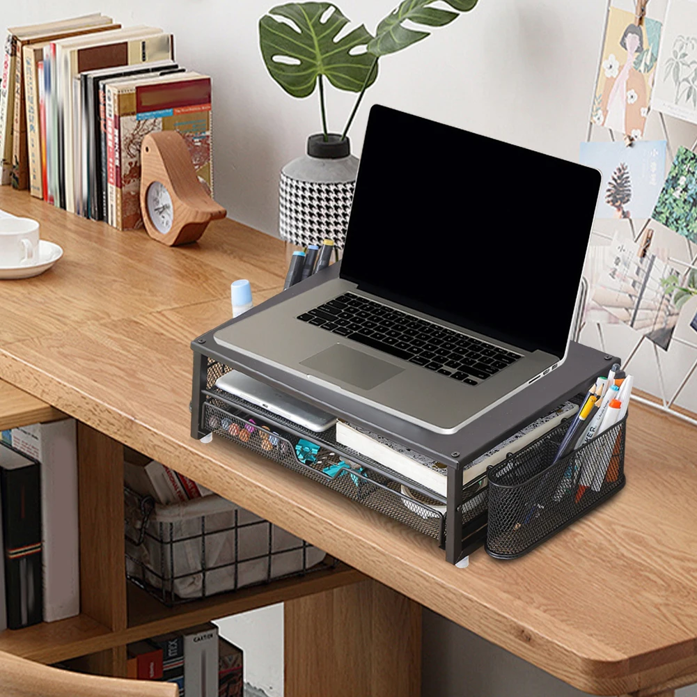 Soporte elevador para monitor de computadora de 2 niveles con cajón y 2 portalápices Organizador de oficina Soporte elevador para monitor de escritorio Accesorios de escritorio de oficina para suministros de oficina