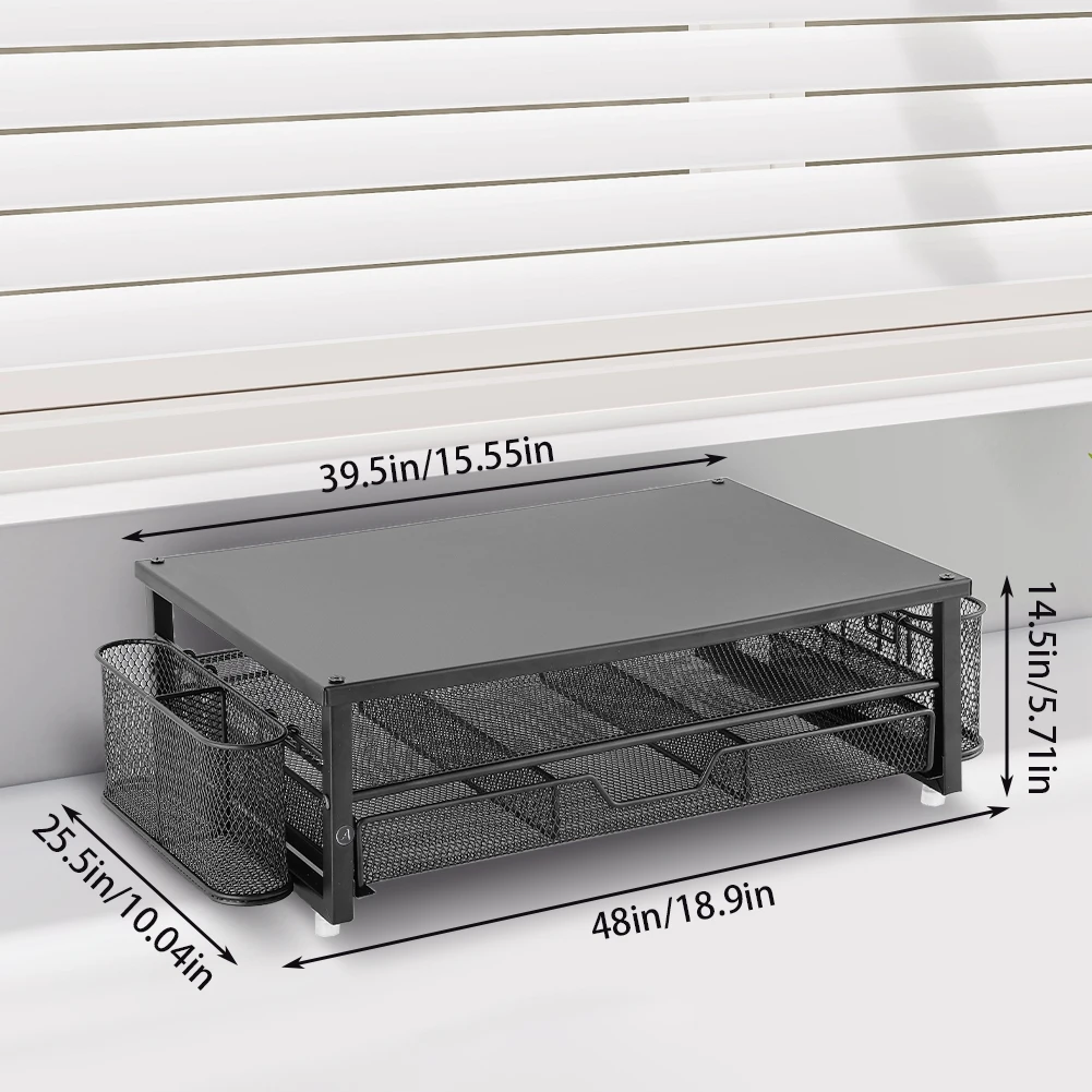 3. Almacenamiento de escritorio perfecto:Con un tamaño de 48 cm (largo) x 25,5 cm (ancho) x 15 cm (alto), este organizador de escritorio proporciona un amplio almacenamiento.El cajón inferior almacena papeles, mientras que los compartimentos superiores guardan teléfonos, bolígrafos y más, optimizando su espacio de trabajo.