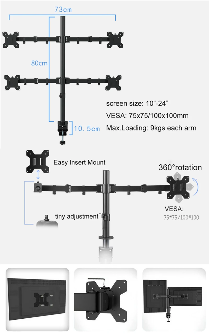 Comprar Soporte de escritorio para 4 pantallas, brazo de montaje para Monitor LED LCD de 10 a 24 pulgadas, carga de 8kg cada cabezal, 360 grados, movimiento completo