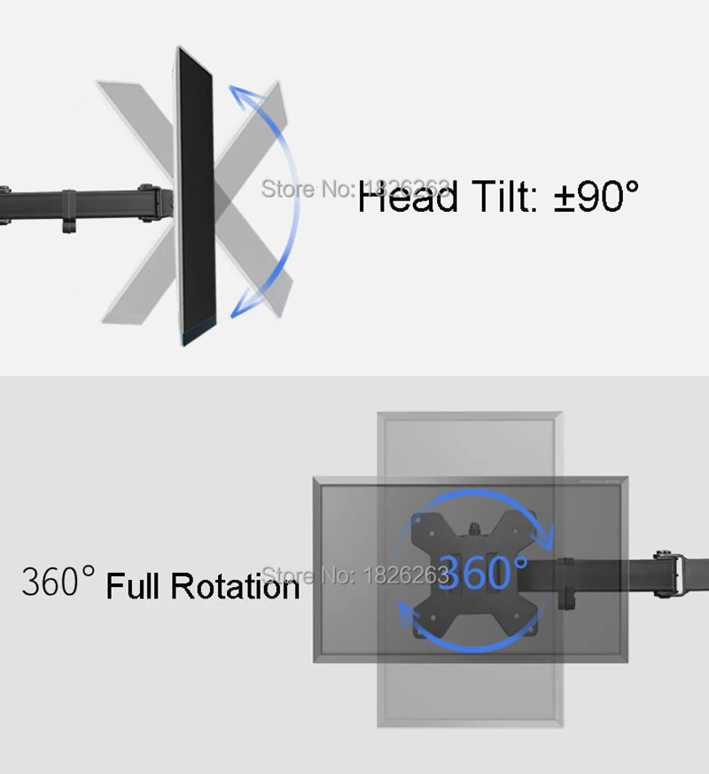 Escritorio de movimiento completo 360 grados 4 pantallas Monitor titular 10 "-24" LCD LED Monitor montaje brazo carga 8kgs cada cabeza