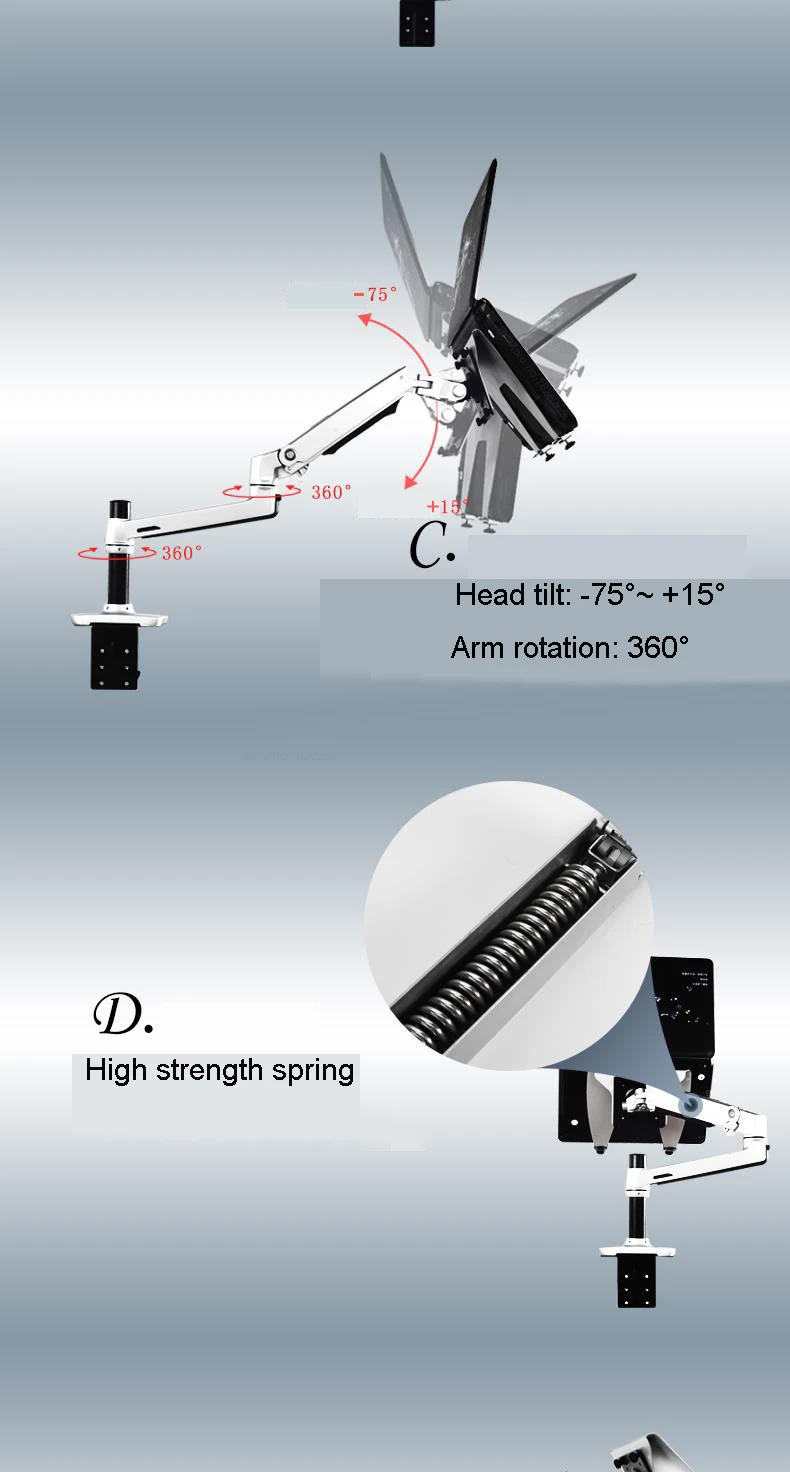 Soporte de escritorio de doble uso soporte de monitor de 17-27 pulgadas/soporte de portátil de 17 pulgadas brazo de resorte mecánico