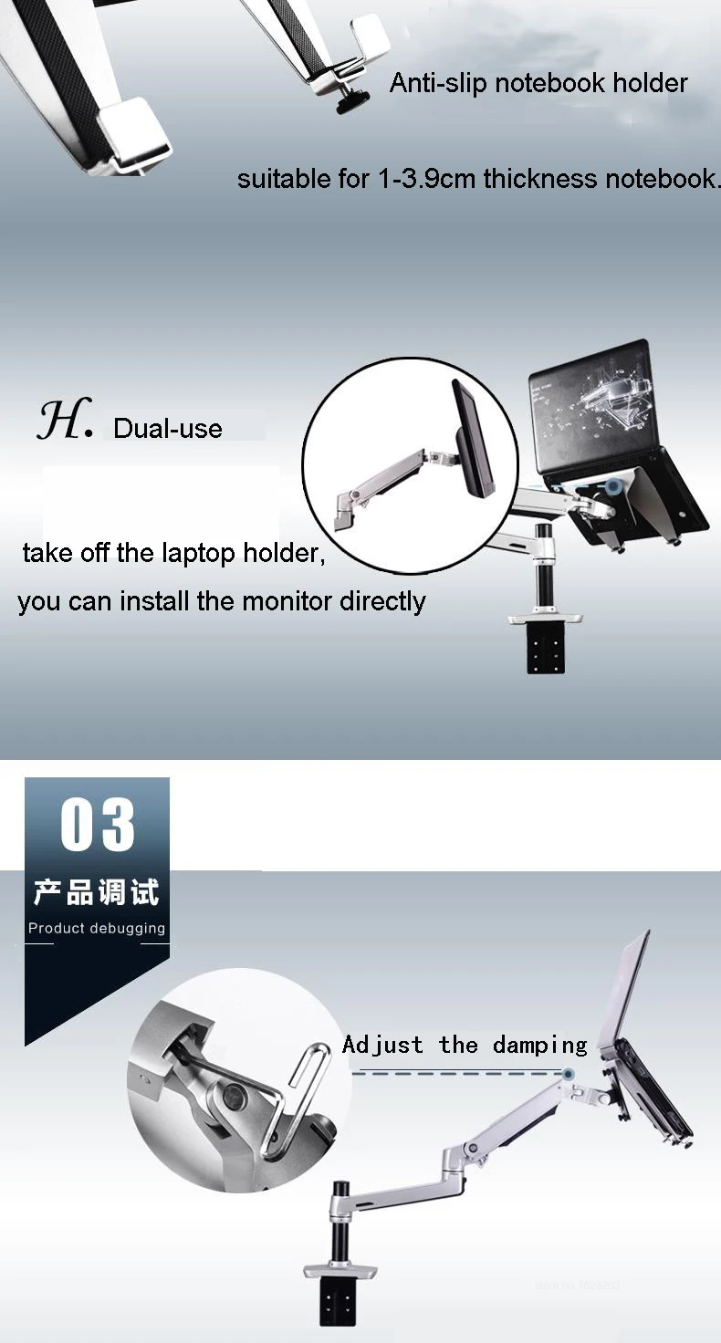 Comprar Soporte de escritorio de aleación de aluminio V62CT/XSJ8012CT, soporte de Monitor de doble uso, 17-27 pulgadas, 17 pulgadas, soporte para portátil, brazo de resorte mecánico