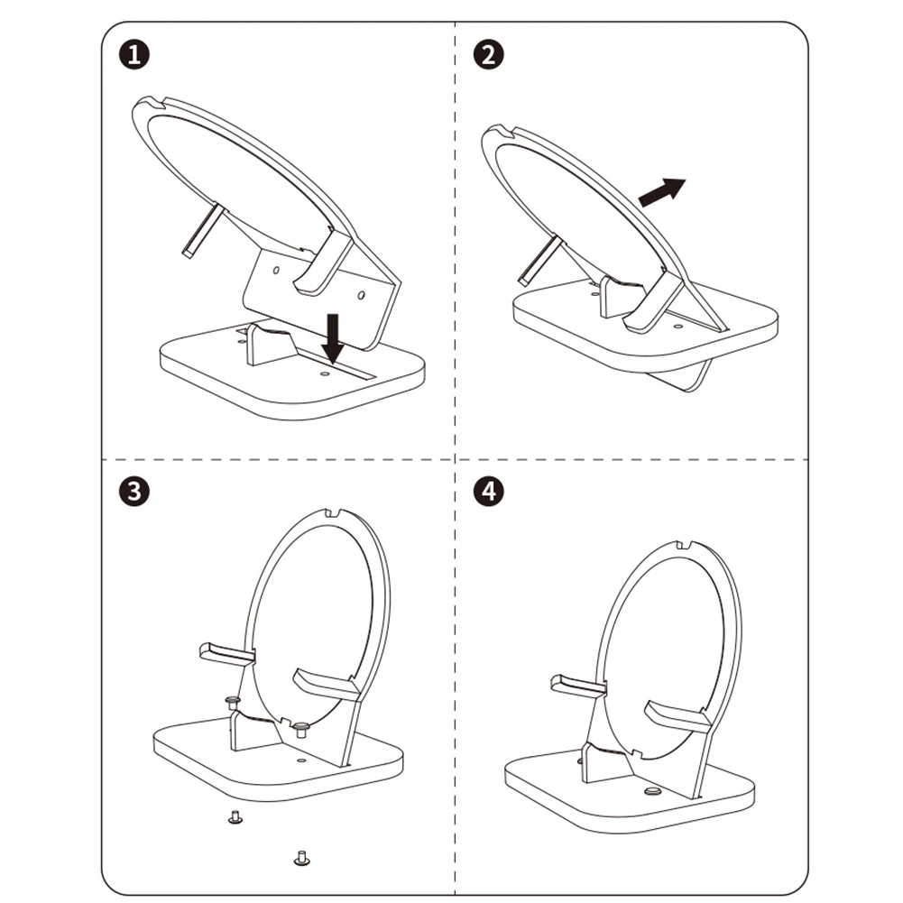5. Fácil de usar:Este soporte es muy fácil de instalar. La base y el soporte se fijan con dos tornillos. Inserte la parte transparente en la ranura del panel negro y luego apriete el hardware sin herramientas.