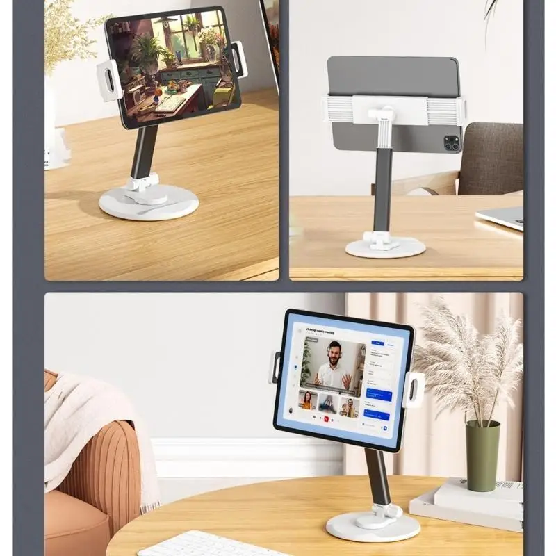Características:OOTDTYExperimente la comodidad con el soporte de abrazadera de escritorio ajustable para teléfonos y tabletas, que puede girar 360 grados según las preferencias de visualización.