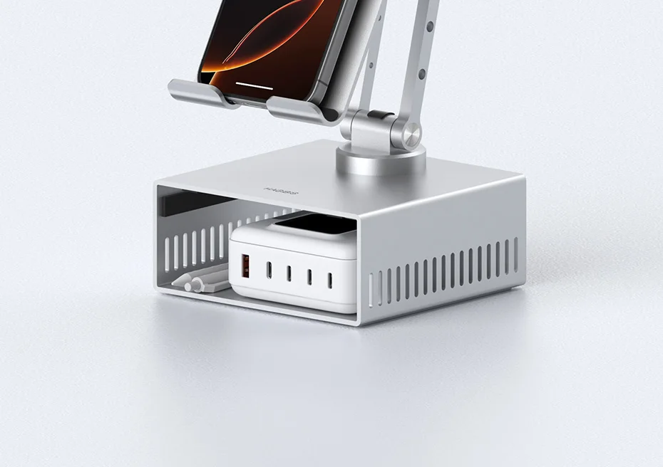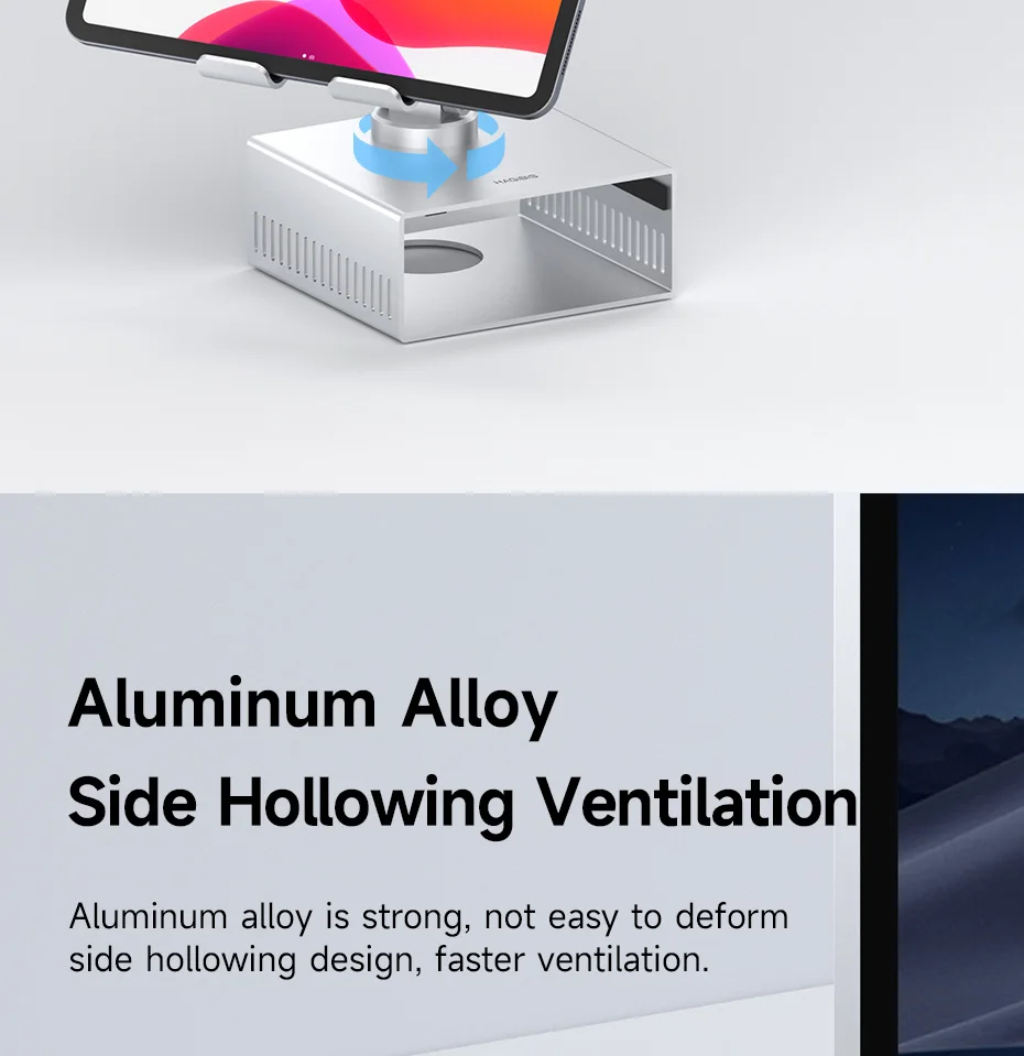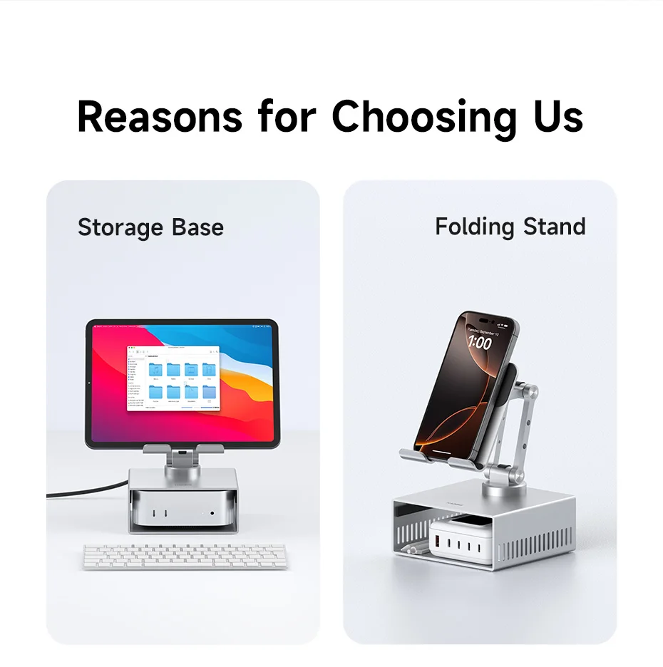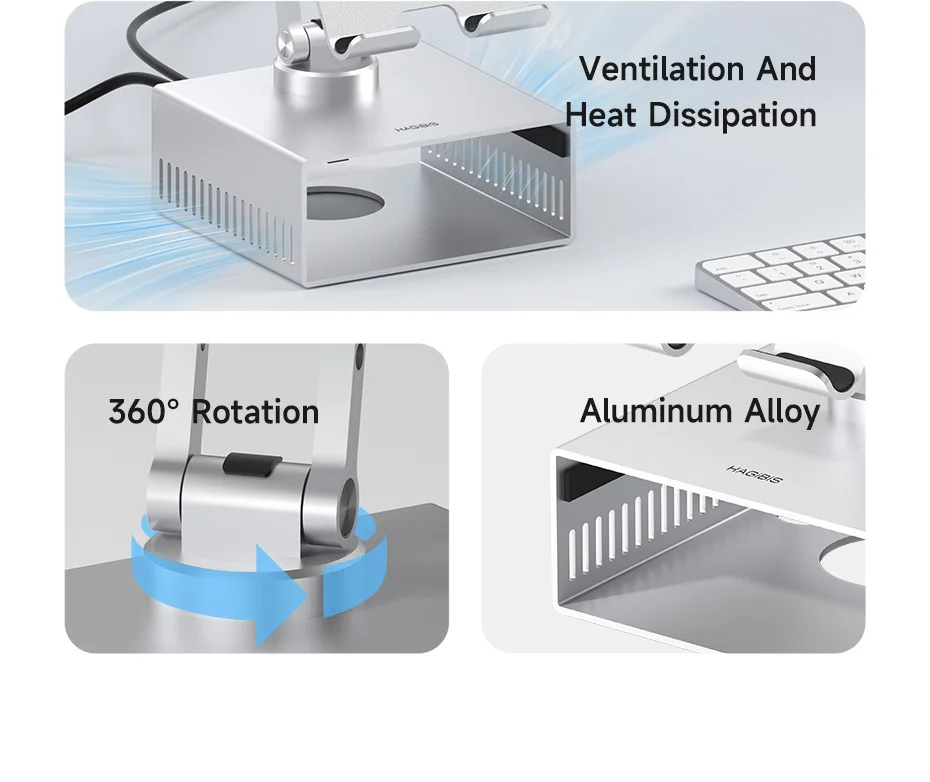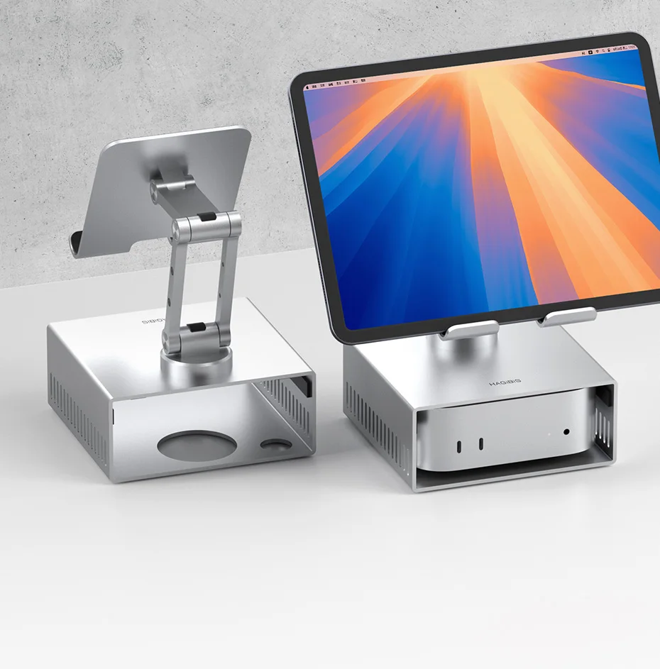 Soporte de escritorio Hagibis para iPad Pro/Air Mac mini M4/M4 Pro Soporte de metal de almacenamiento 360 ° Soporte multifunción plegable ajustable