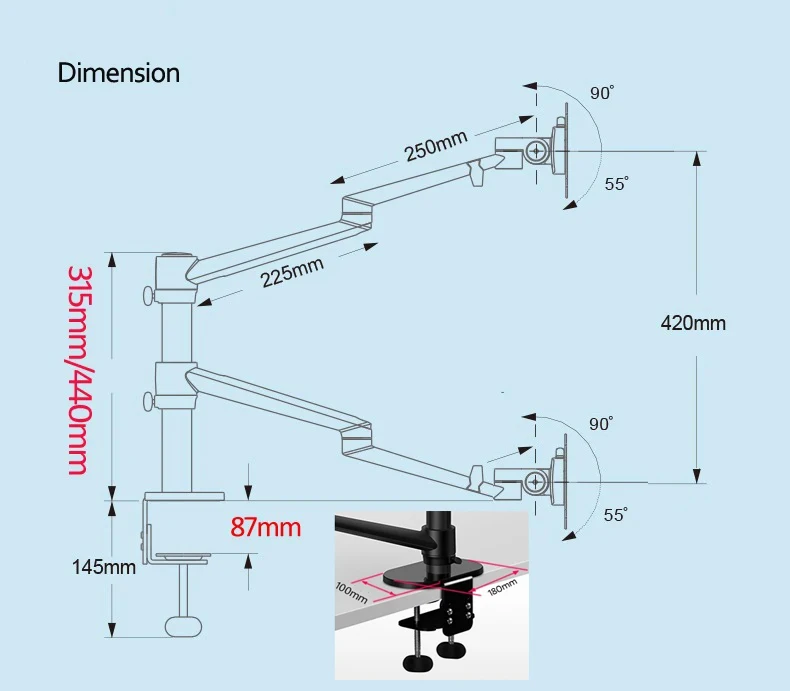 Comprar Soporte de escritorio para monitor, base ergonómica de aluminio multifunción de 440mm, 10-17 pulgadas, doble 32 pulgadas, para ordenador, PC, movimiento completo con barra de columna