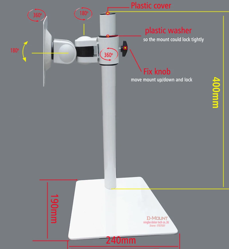 Comprar Soporte de escritorio para monitor individual, base de metal de 10 "-27" 25 ", altura ajustable, 10kg, montaje de pantalla, movimiento completo, inclinación, giratorio 360