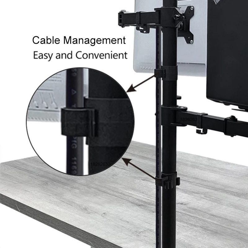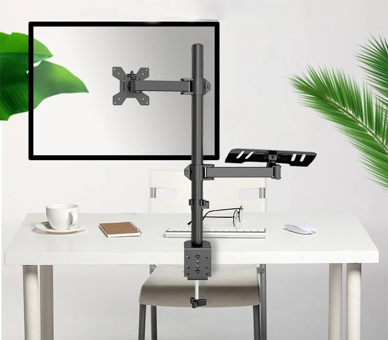 M076/M074 Soporte de escritorio para monitor LCD dual Soporte de ajuste completo con bandeja adicional para computadora portátil Notebook de hasta 17 "y pantalla de hasta 32"
