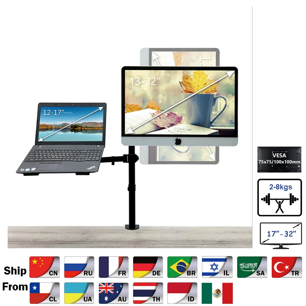Montaje de movimiento completo: monitor + portátil fácilmente inclinable, giratorio y giratorio