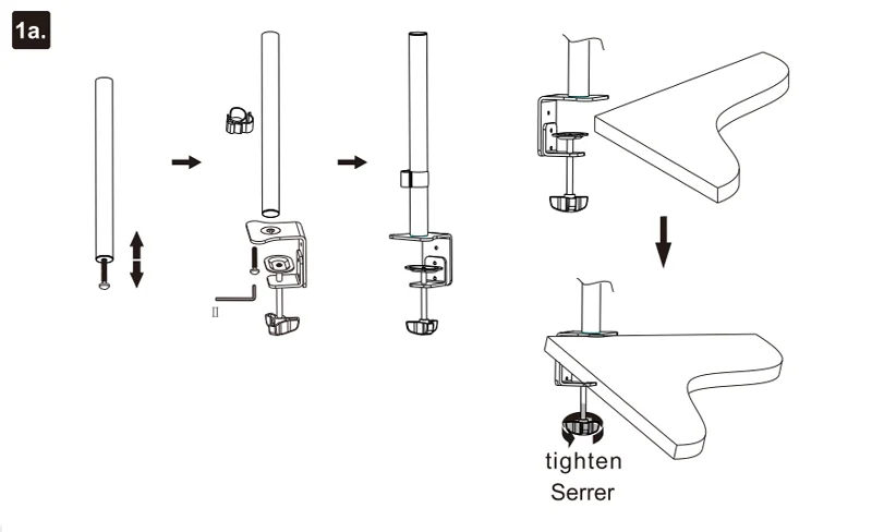 Instalación de la abrazadera: Para espesor de escritorio=80mm