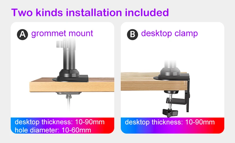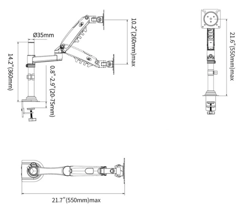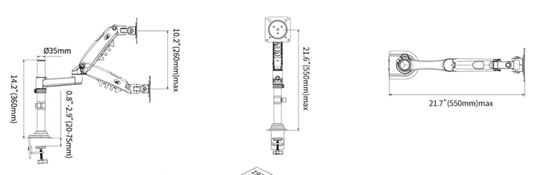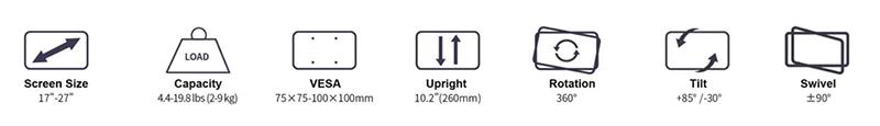 Carga: 2,0-9,0 kg (4,4-19,8 lbs) (Por favor, asegúrese de que el peso de su pantalla esté dentro de este rango, ¡o el brazo de resorte de gas no podrá funcionar!)