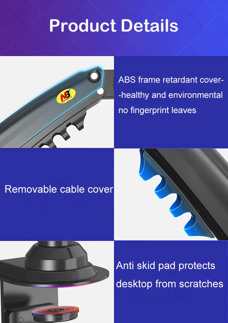 Comprar Soporte de escritorio NB H80 para Monitor LED LCD, brazo de montaje de TV, resorte de Gas de 17-27 pulgadas, movimiento completo, ergonómico, carga de 2-9 kg