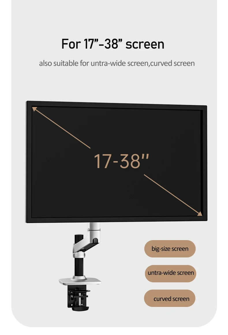 Comprar Soporte de escritorio para ordenador portátil, accesorio de 17 ", DL-8012LP, movimiento completo, 17-38", brazo de resorte mecánico, soporte de aluminio, 3-11kg, blanco, 450mm