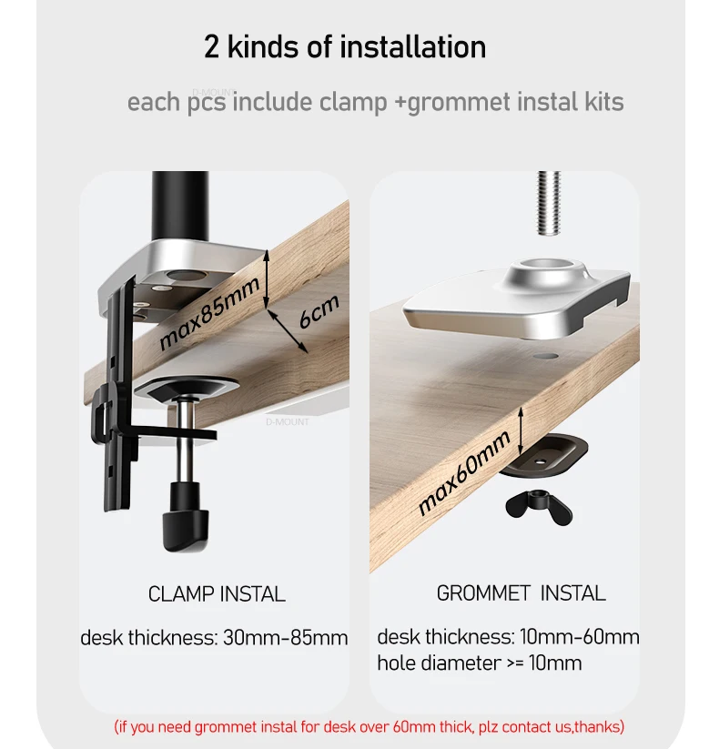 Instalación: Sujeción de escritorio 30-85mm,o montaje de ojal 10-60mm (contáctenos para montaje de ojal de 60-140mm)
