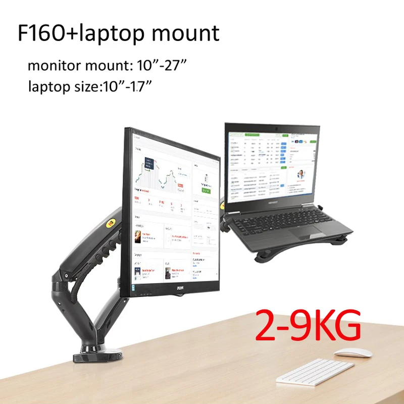 Comprar Soporte de escritorio con pantalla de monitor F160 de 10 "-30" + soporte para ordenador portátil de 10 "-17", soporte de gas de movimiento completo con rotación de 360, movimiento completo de metal de 2-9kg