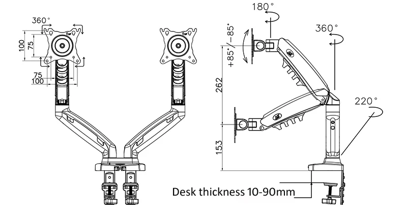 Instalación de abrazadera: espesor del escritorio dentro de 10-90 mm