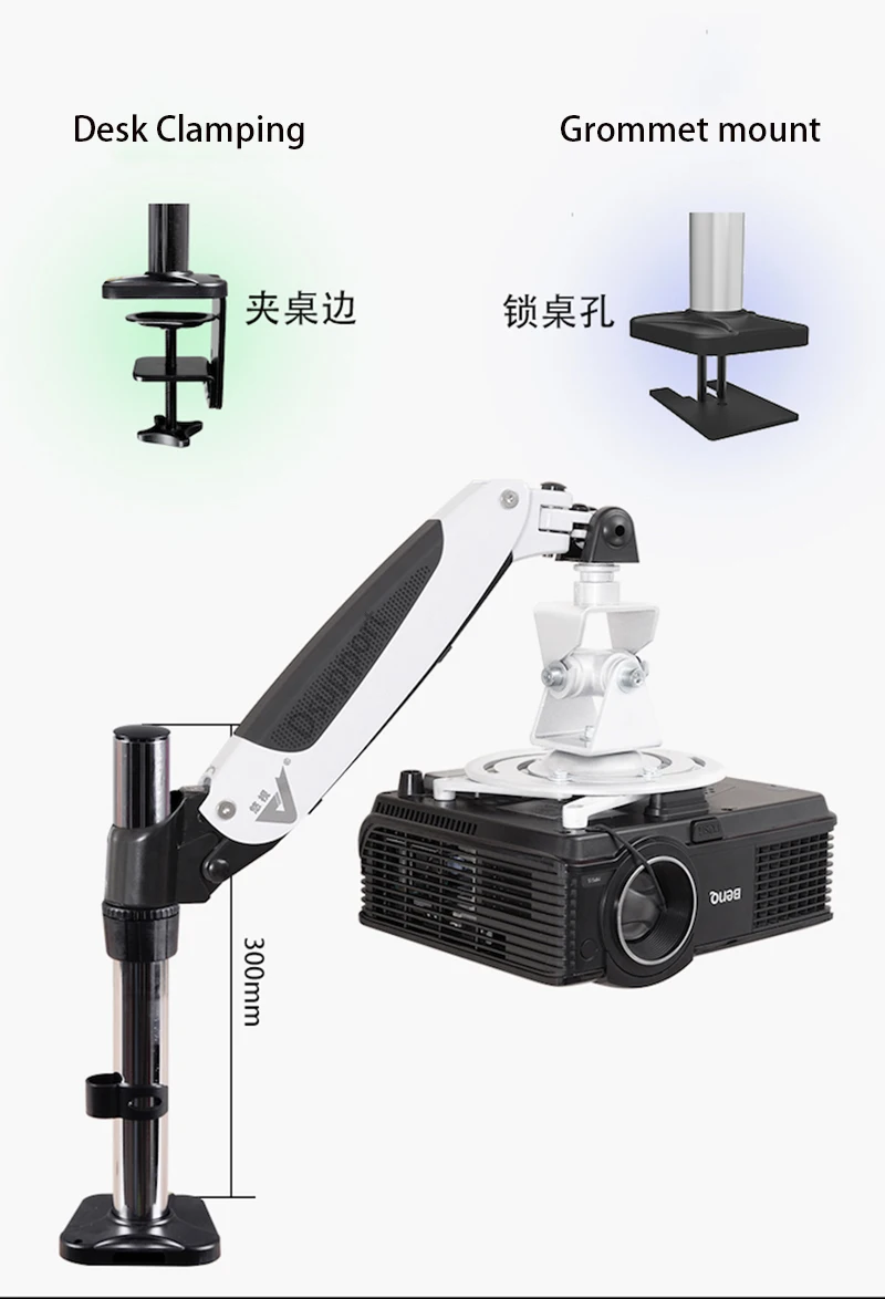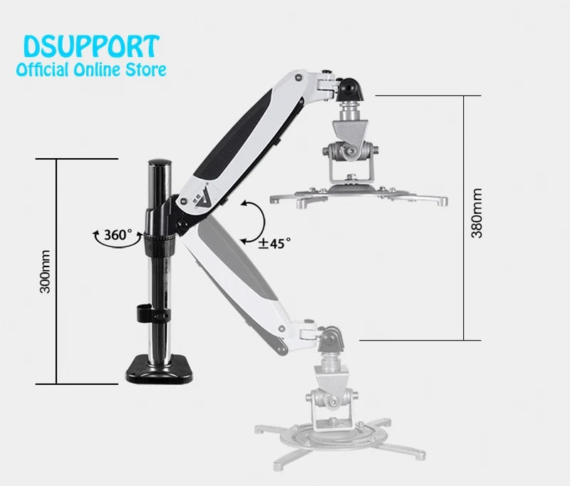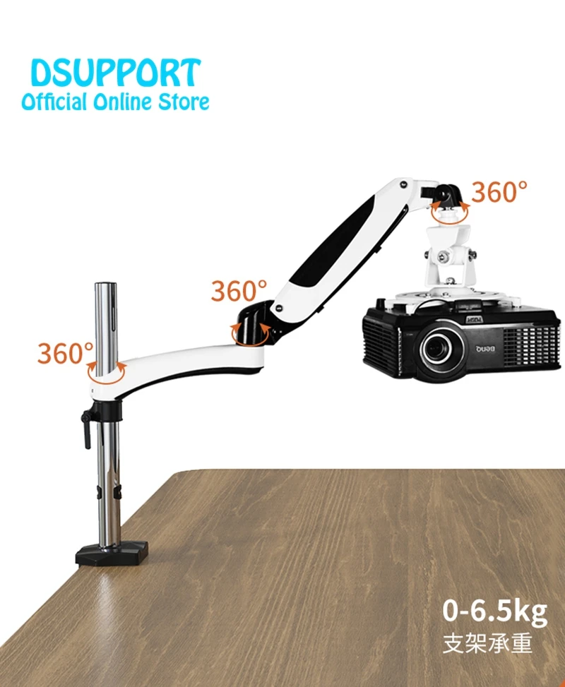 PR03ABC, aleación de aluminio, 360 grados, soporte de escritorio para proyector, soporte Universal retráctil de movimiento completo