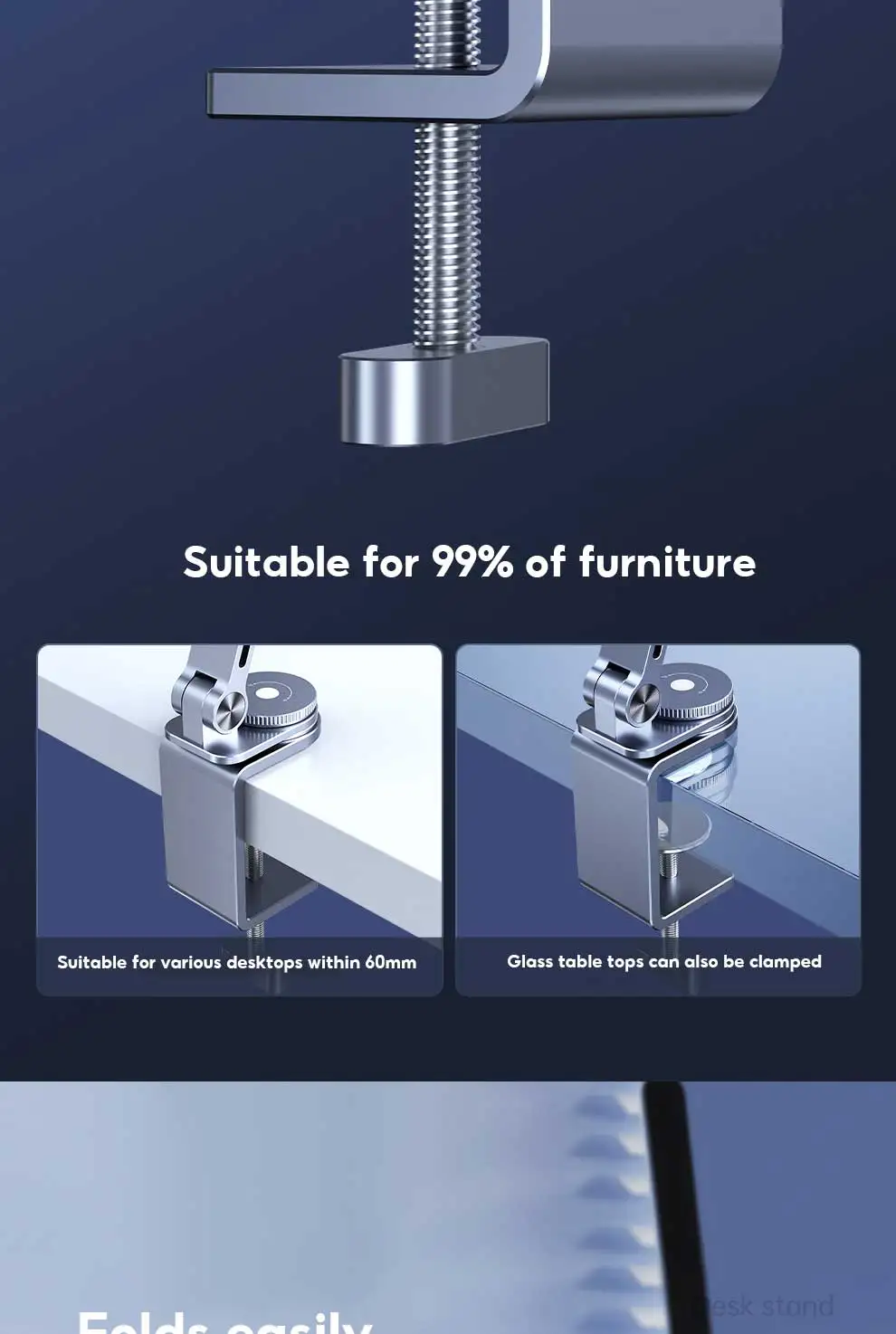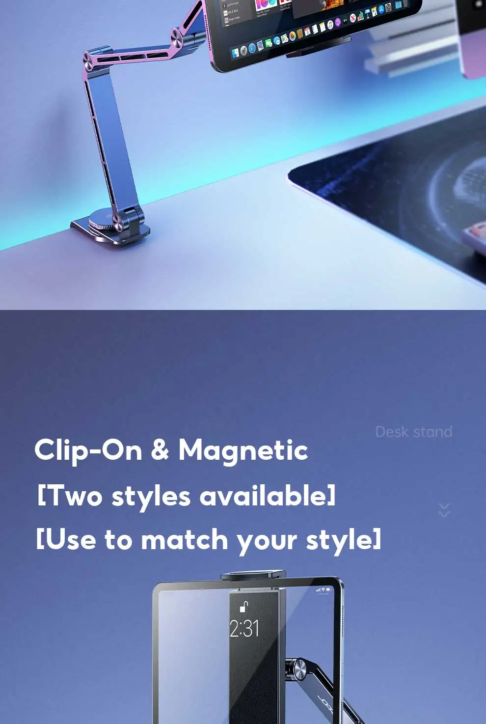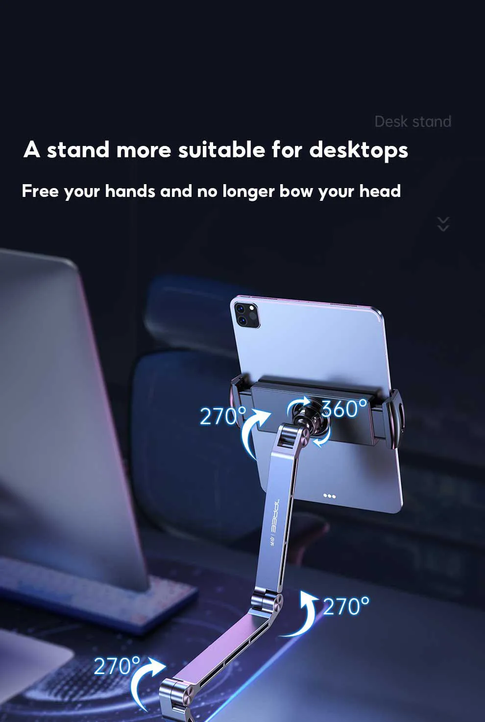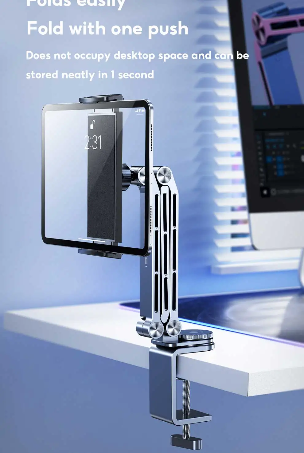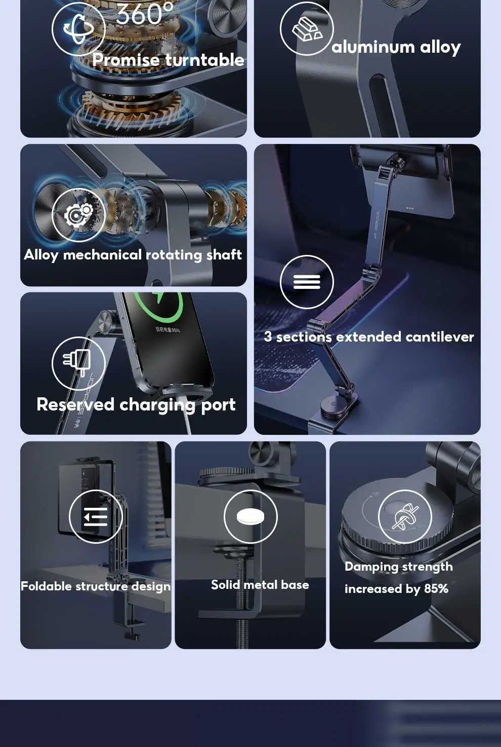 Comprar Soporte de escritorio para tableta, soporte giratorio de 360 °, plegable, aleación de aluminio, fijación para oficina, soporte magnético para teléfono
