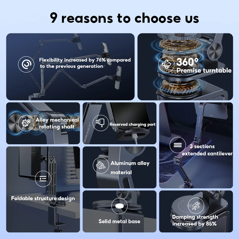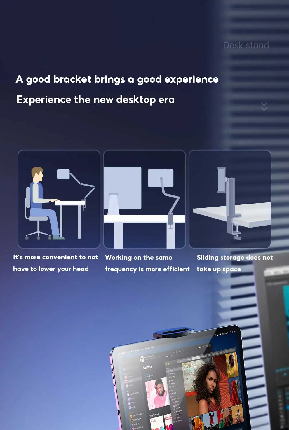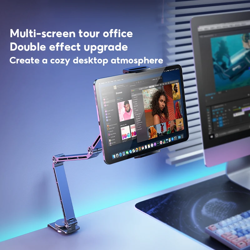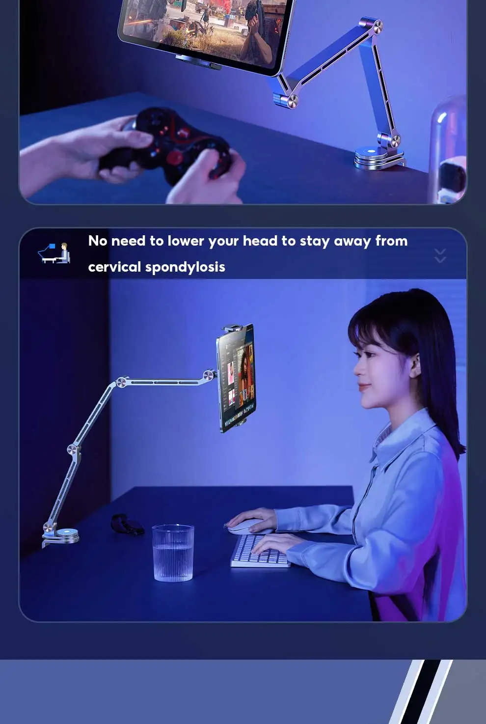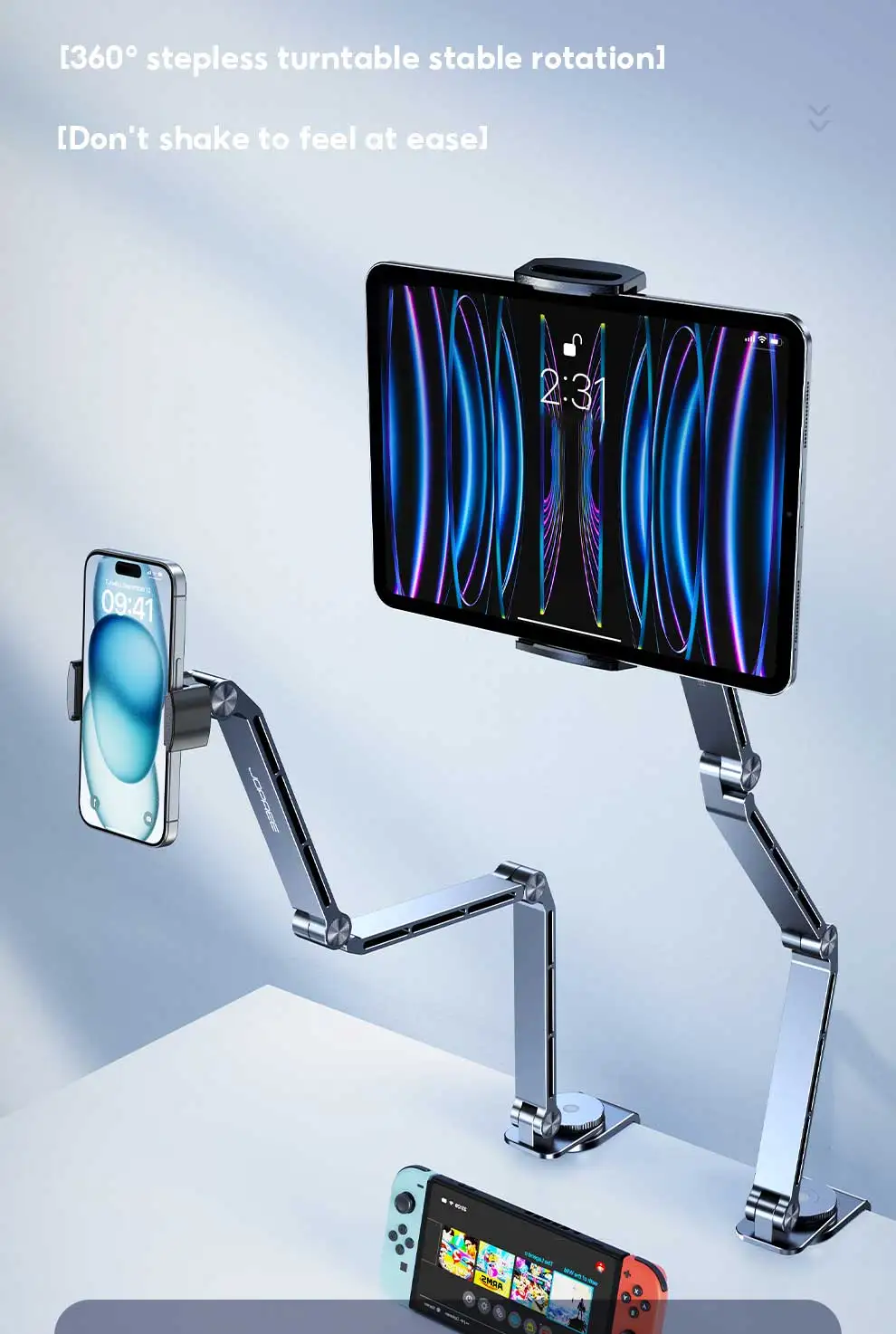 Comprar Soporte de escritorio para tableta, soporte giratorio de 360 °, plegable, aleación de aluminio, fijación para oficina, soporte magnético para teléfono