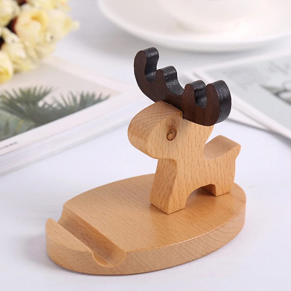 Lindo soporte para teléfono móvil de perro/cervo soporte antideslizante de madera para teléfono de animales adorno de escritorio soporte para teléfono móvil soporte para mesa escritorio habitación oficina escuela
