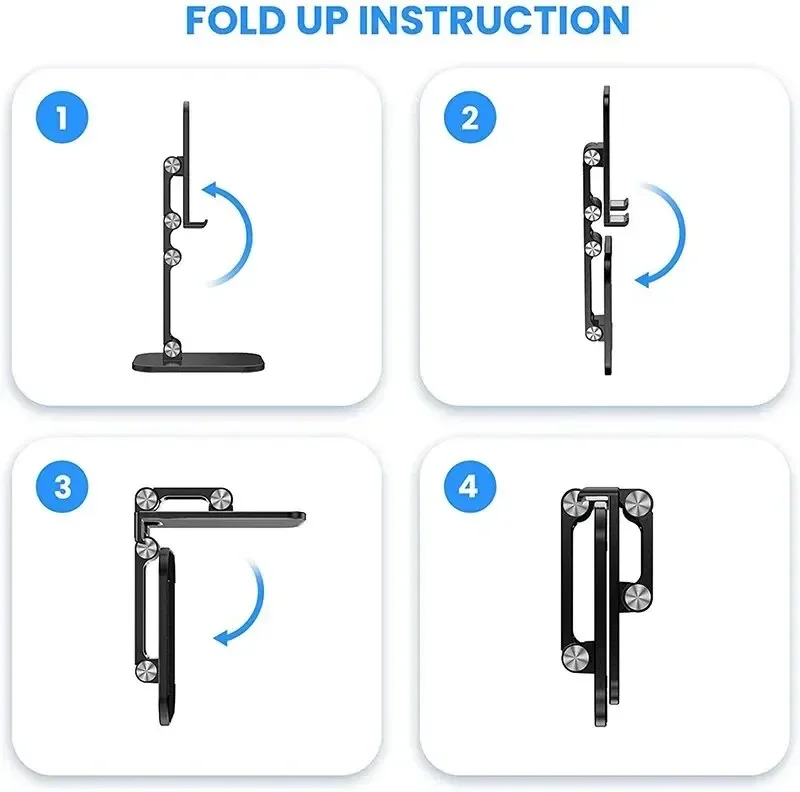 Plegable y portátil:Este soporte para teléfono móvil de escritorio es plegable y portátil, lo que facilita su transporte y uso mientras viaja.