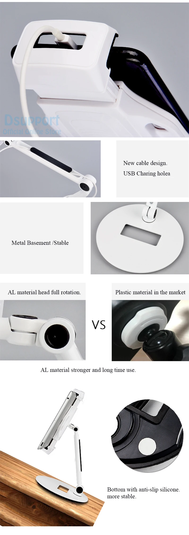 2019 nuevo soporte de escritorio de aleación de aluminio de ajuste libre de 4-12,9 pulgadas para teléfono/tableta PC para ipad pro iphone surface book