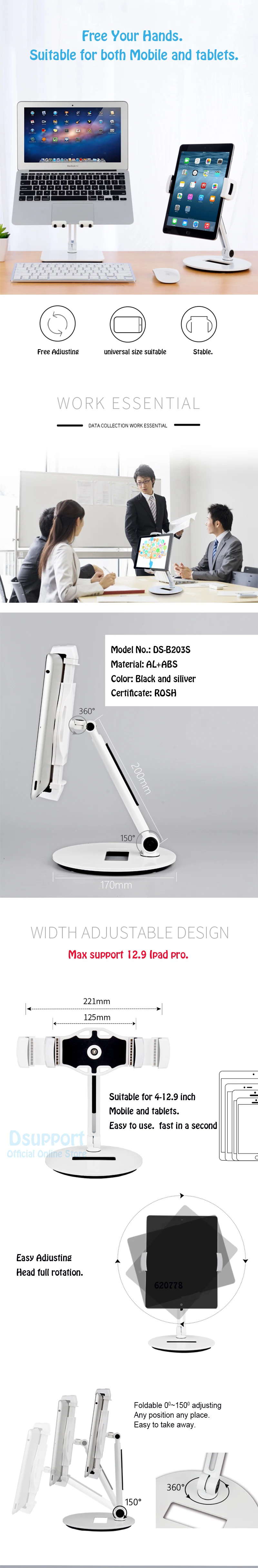 Comprar Soporte de escritorio para teléfono/tableta PC, aleación de aluminio, Ajuste libre, 4-12,9 pulgadas, pro para ipad, iphone, surface book