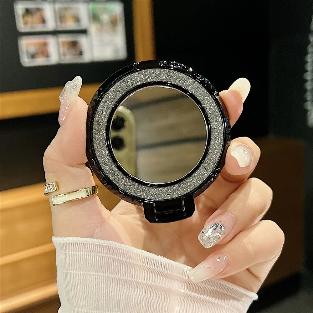 Soporte de espejo con purpurina ostentosa de lujo, agarre giratorio de 360 grados para teléfono móvil, pegatina trasera, soporte de enchufe