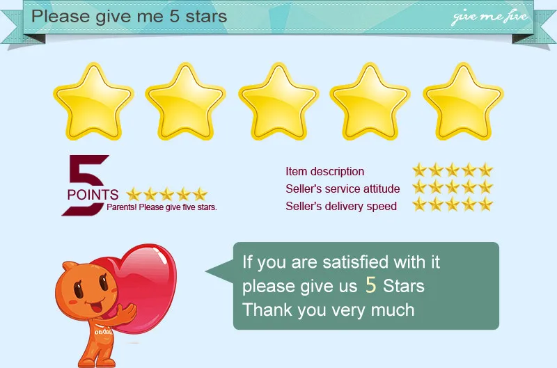 Servicio, por favor déjenos un comentario de 5 estrellas.