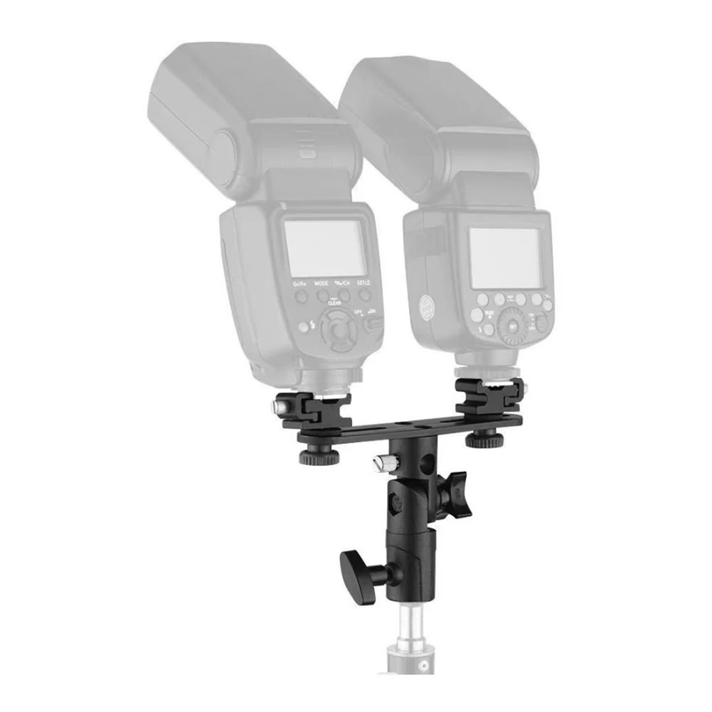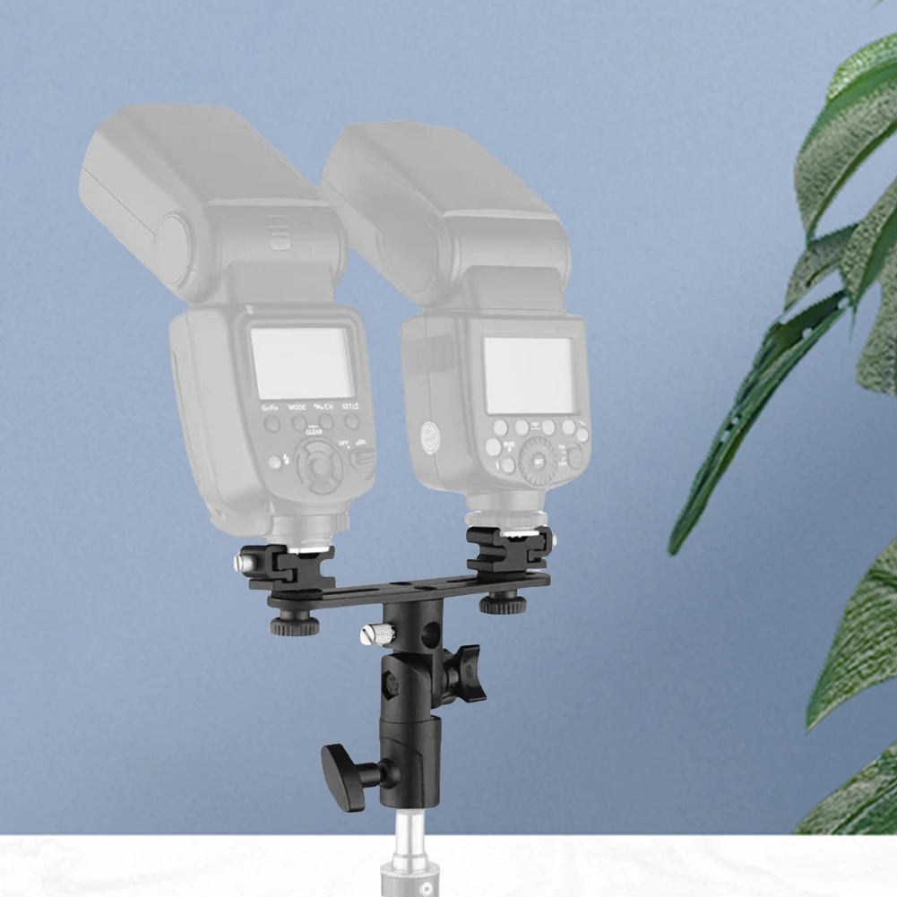 Soporte de flash dual Soporte de luz rápida de zapata de 1/4 de pulgada a 3/8 pulgadas Soporte de paraguas de flash de zapata doble con 2 soportes de zapata fría Soporte de flash dual en forma de T para cámara Canon Nikon DSLR