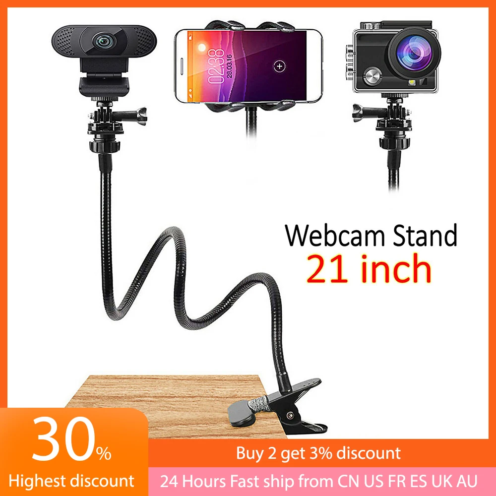 Comprar Soporte Flexible para cámara web, soporte para teléfono móvil para Gopro/Logitech, mesa, cama, escritorio, pinza con cuello de ganso